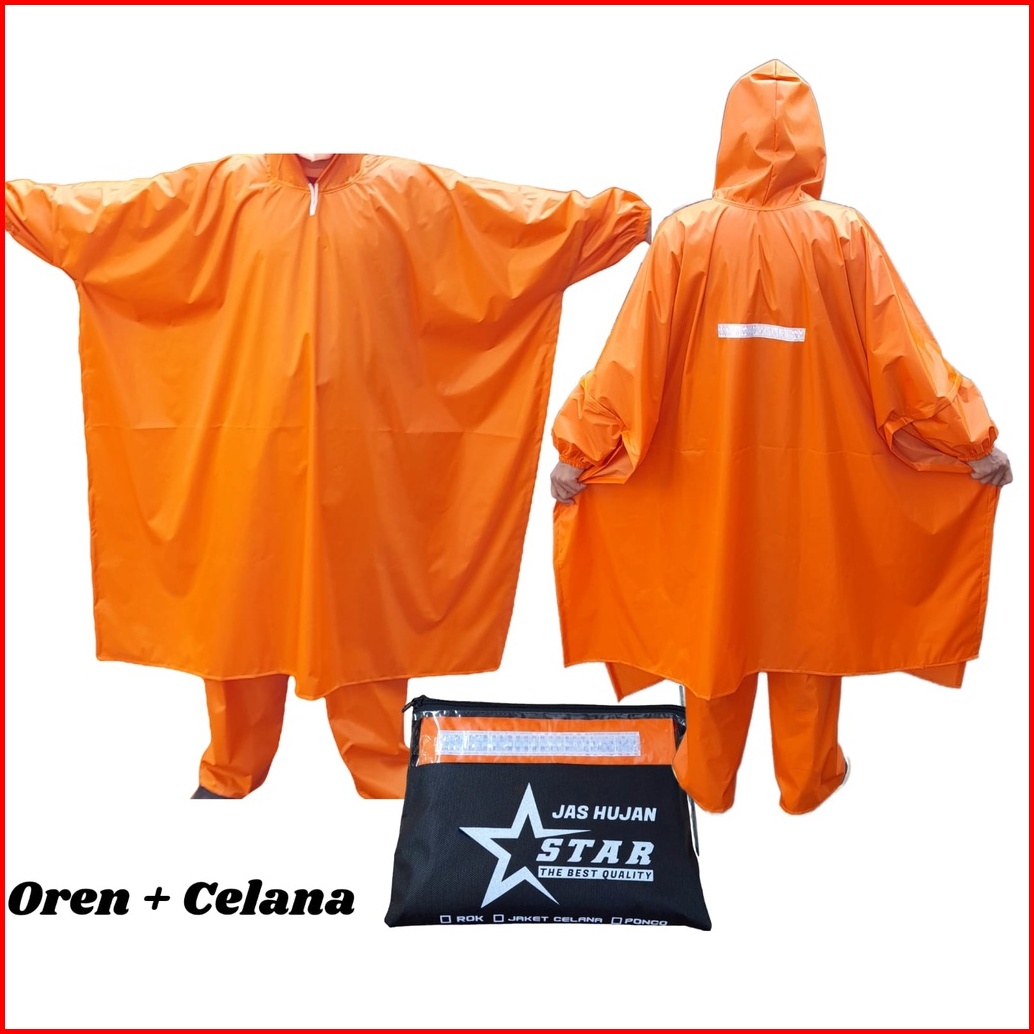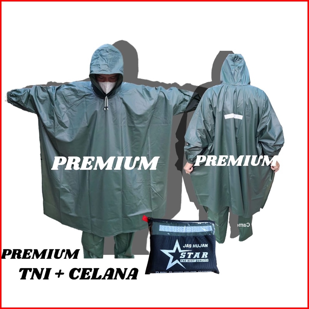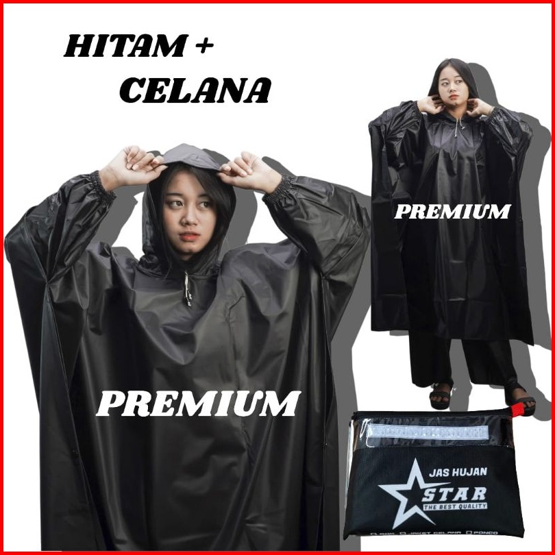 Jas Hujan Ponco Lengan Kelelawar Celana Pria Wanita Antirembes Bahan Sangat Tebal