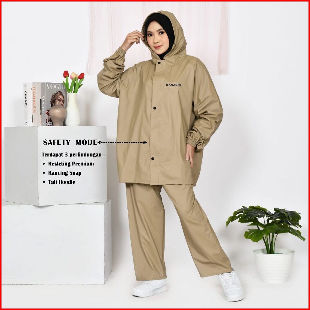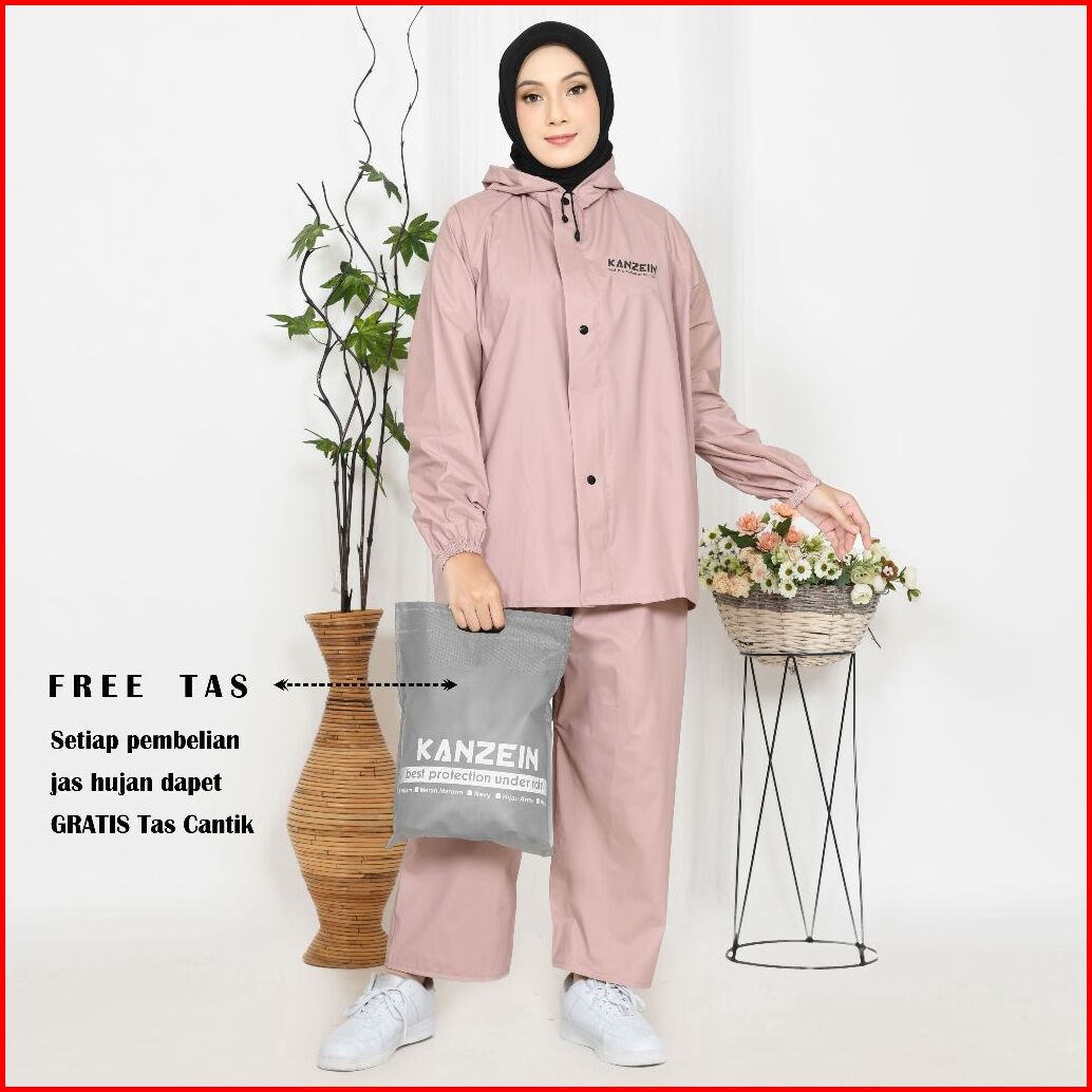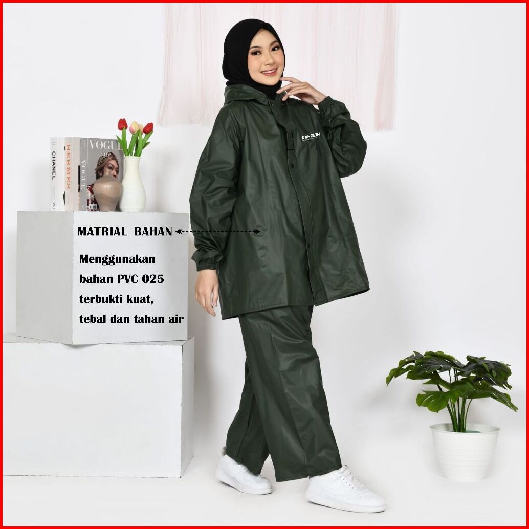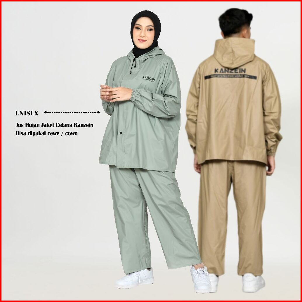Jas Hujan Setelan Stelan Jaket Celana Atas Bawah Pria Wanita Cewe Cowo Merek Kanzein