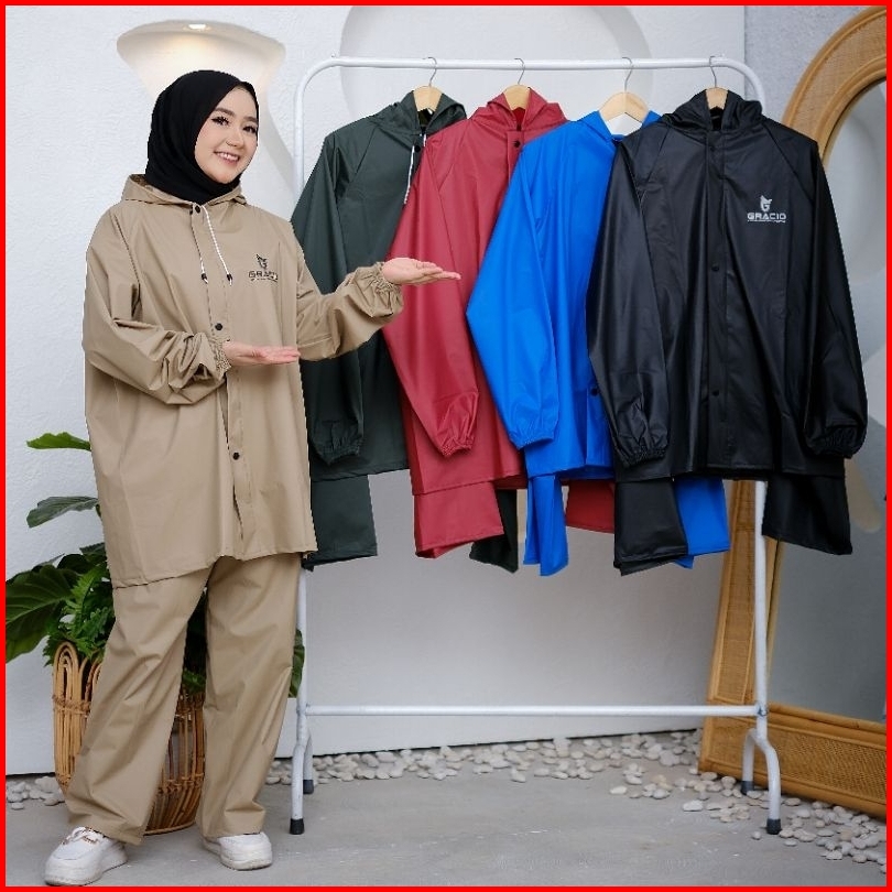 Gracio Jas Hujan Setelan Pria Wanita Terbaik Mantel Anti Rembes Mocca Raincoat Premium Original