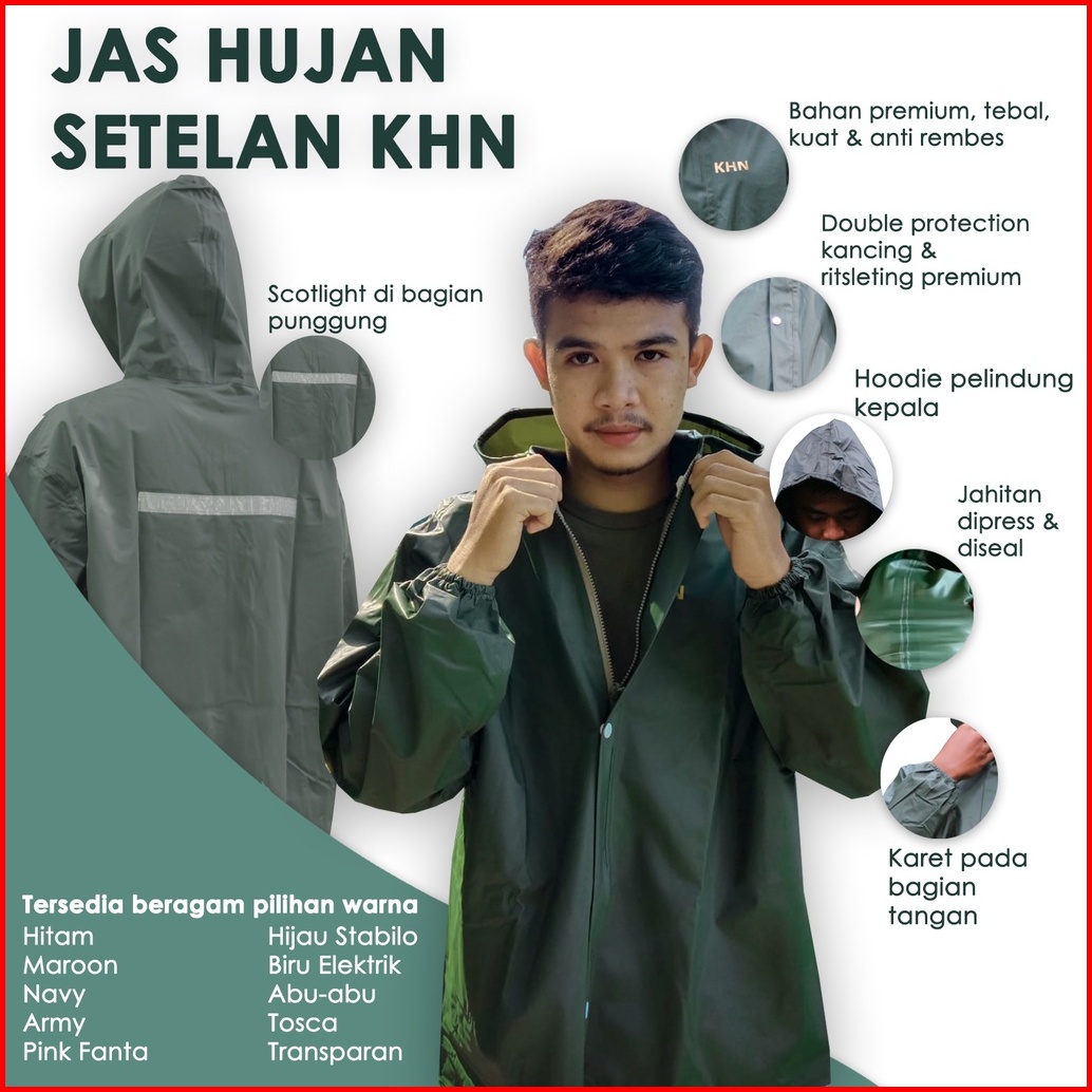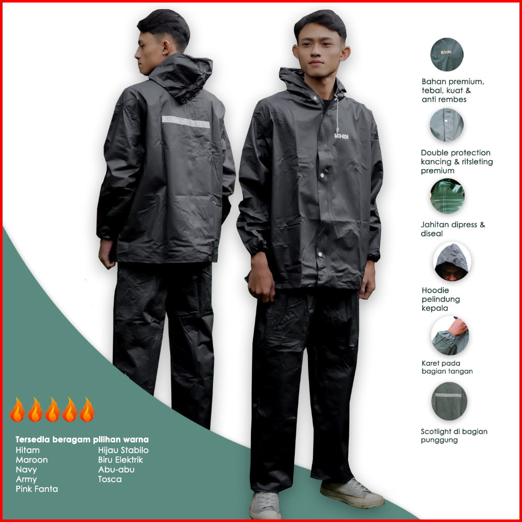Jas Hujan Khn Original Setelan Baju Celana Anti Rembes Tebal Berkwalitas