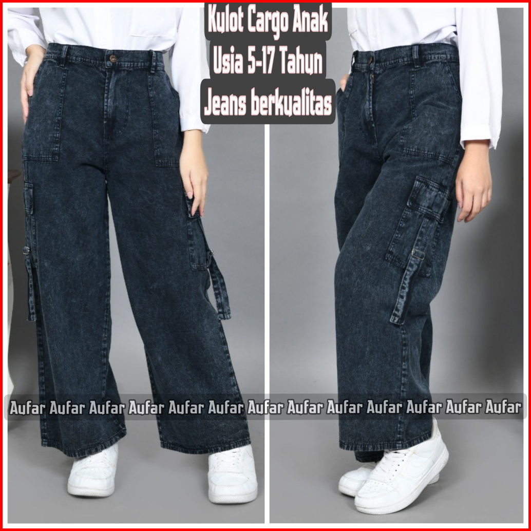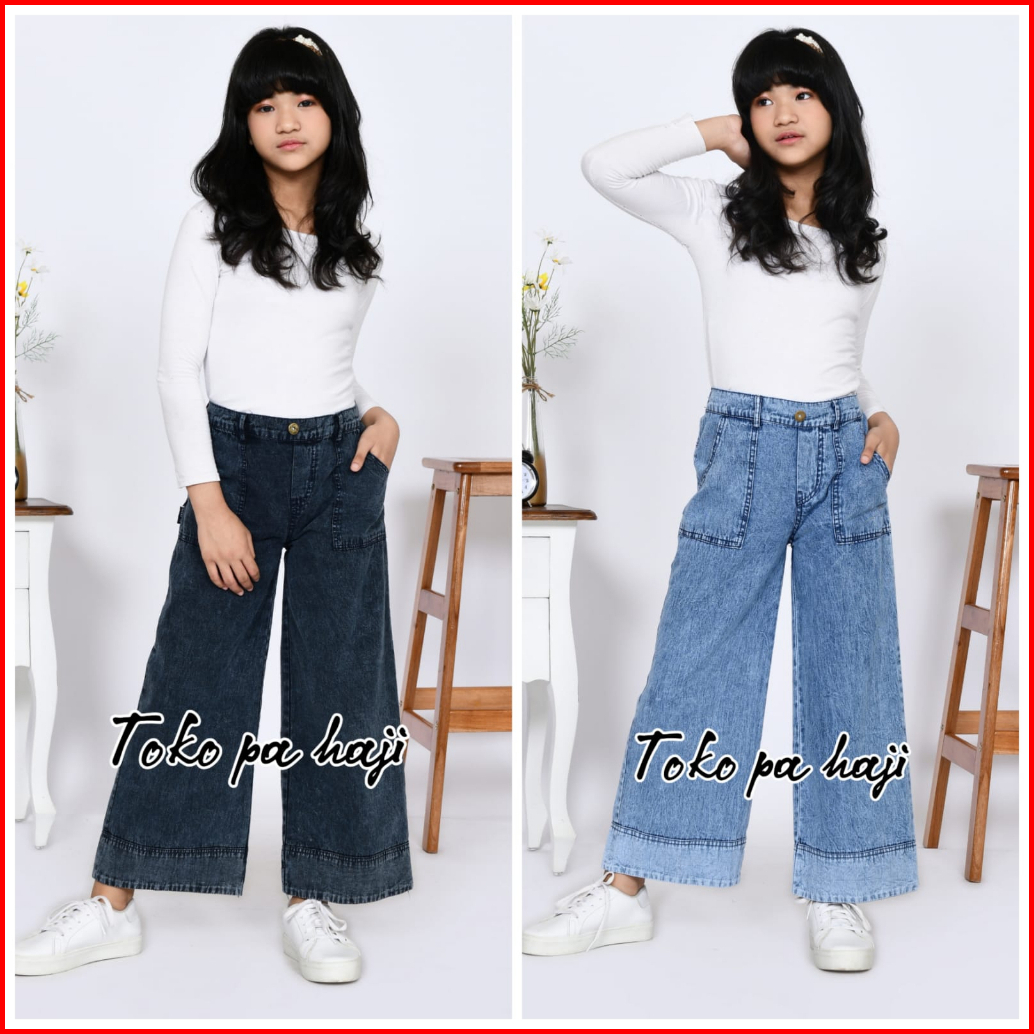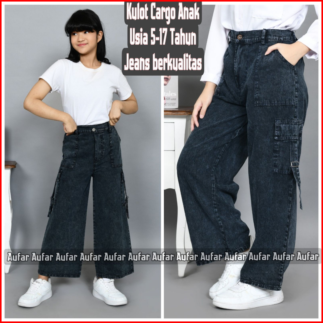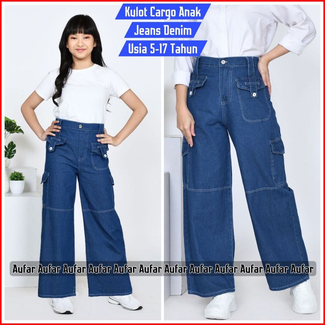 Celana Kulot Jeans Cargo Anak Perempuan Saku Samping Usia 1-17 Tahun