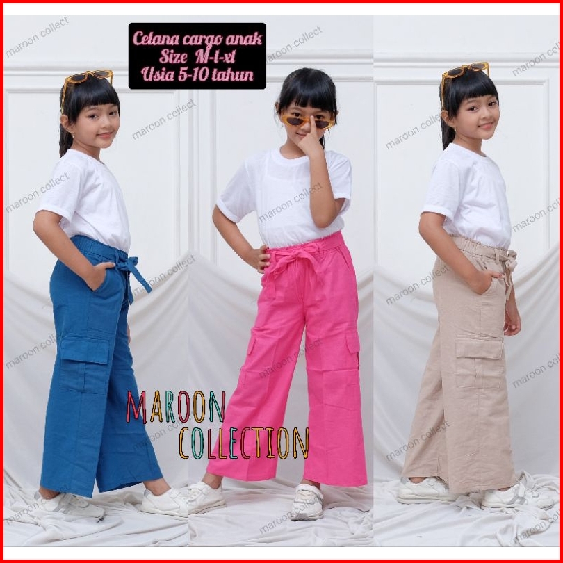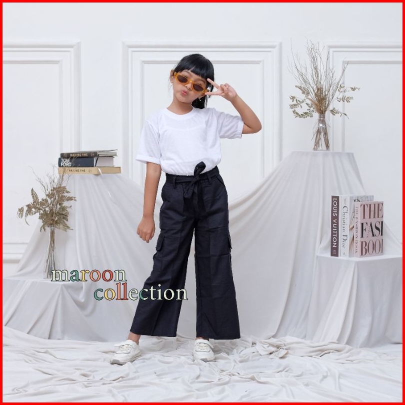 Celana Kulot Cargo Anak Usia 5- 10 Tahun Model Celana Kulot Kekinian Korea Style Celana Panjang Anak Perempuan Celana Ca