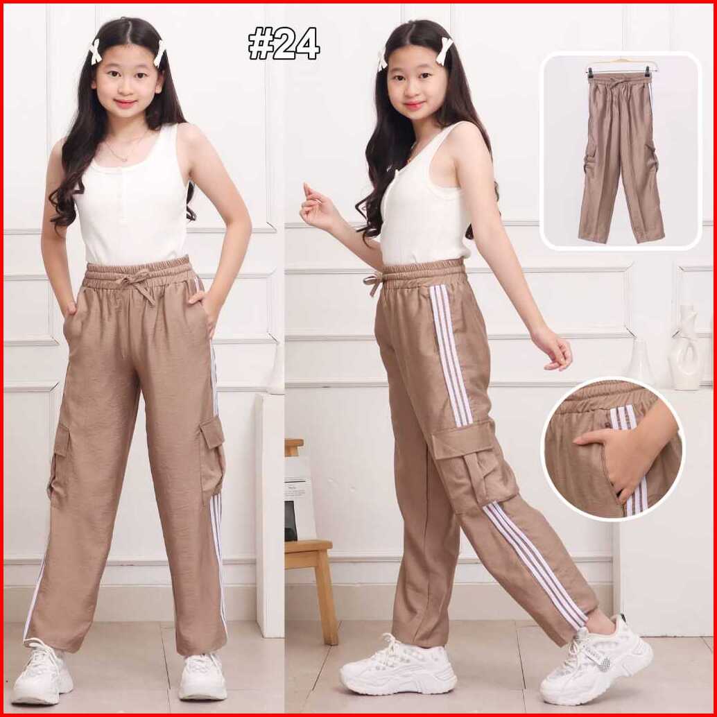 Celana Cargo Pants Anak Perempuan Umur 8 - 15 Tahun