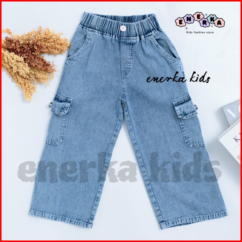 Kulot Cargo Jeans Anak Pinggang Karet Celana Kulot Jeans Anak 2-6 Tahun Kulot Jeans Anak