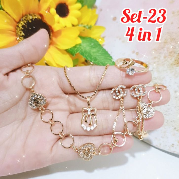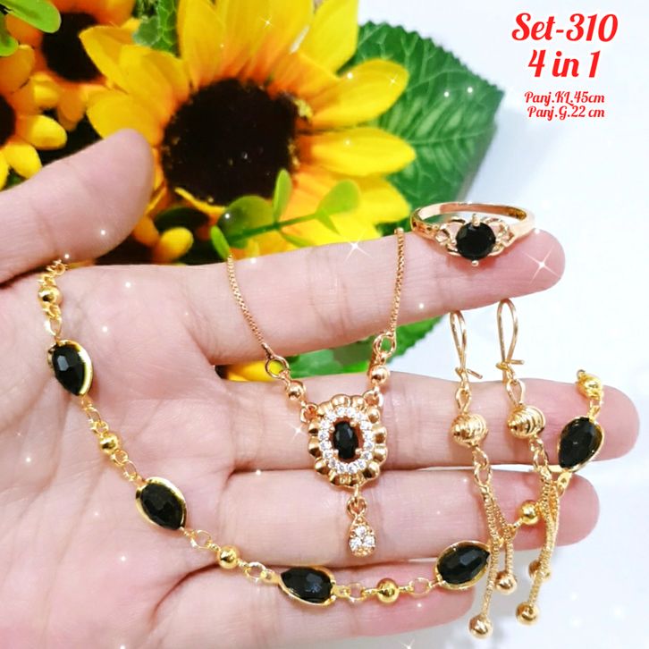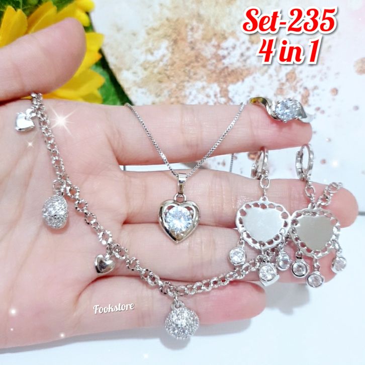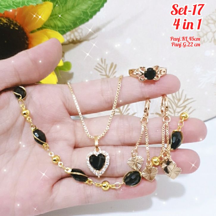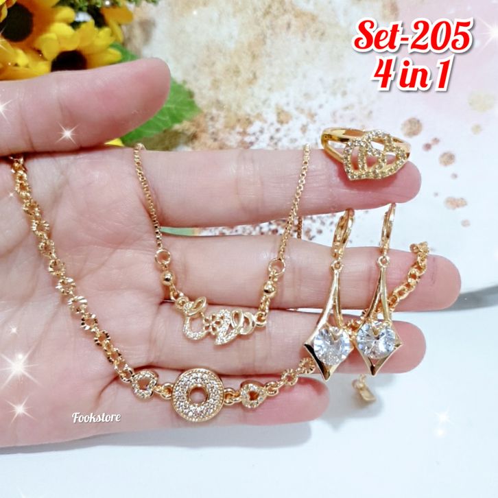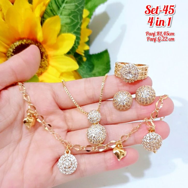 Perhiasan wanita dewasa 1 set kalung cincin anting gelang lengkap satu set Jewelry aksesoris anti luntur