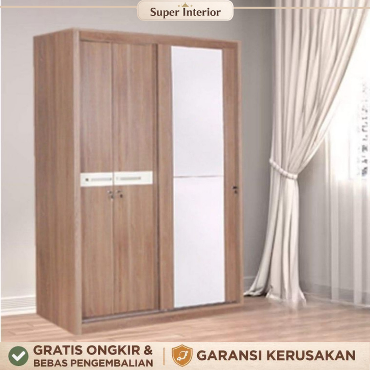 [Star] Lemari Pakaian Minimalis Sliding & Swing 2 Pintu dengan Cermin Lemari Baju Sonoma Oak Brown