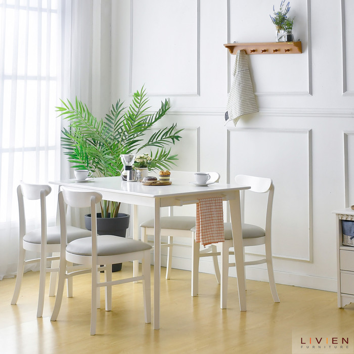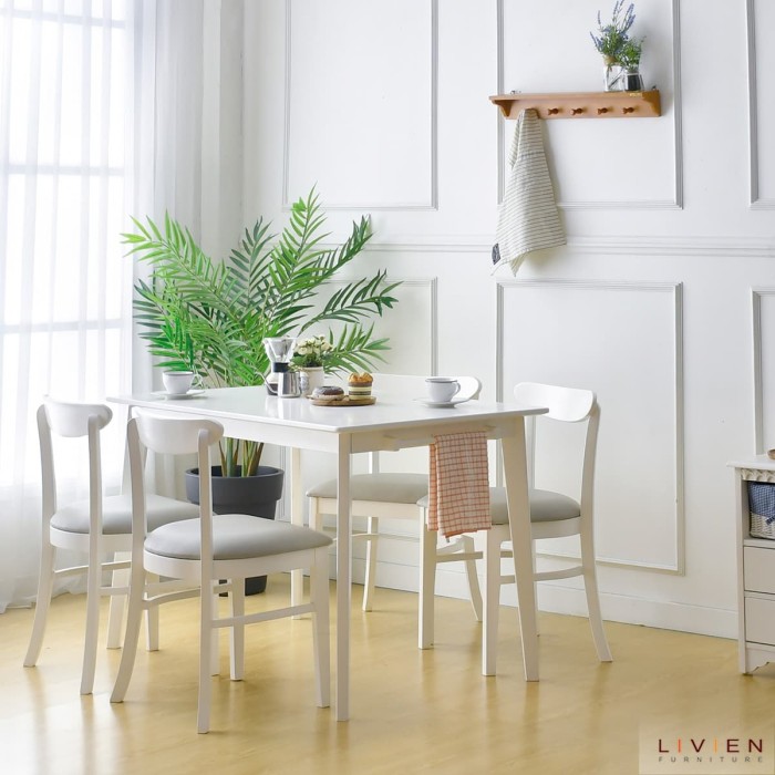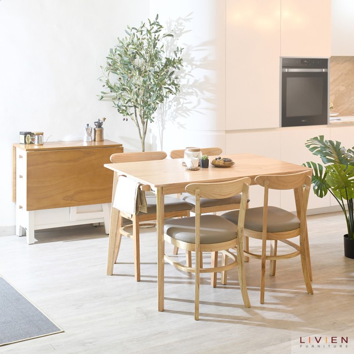 LIVIEN MEJA MAKAN SET MURAH NORA 1200 PLUS EMPAT KURSI MINIMALIS - COKELAT