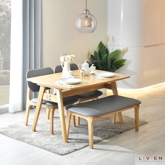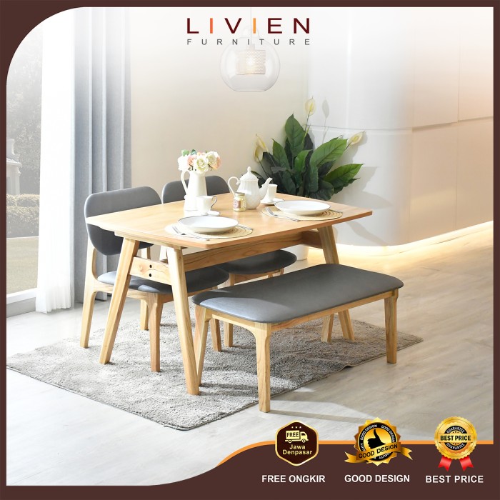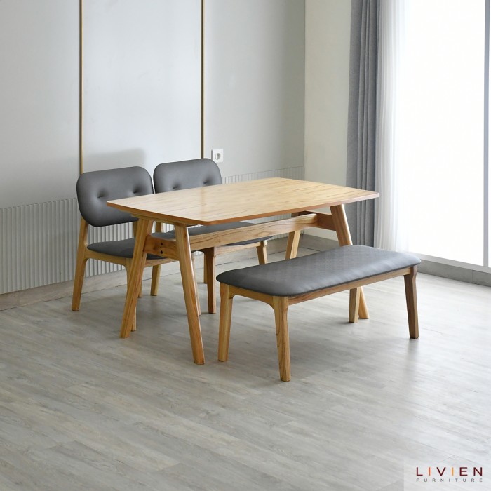 MEJA MAKAN MINIMALIS SET DUA KURSI- 1 BENCH HARMONY DINING SET -LIVIEN - KURSI