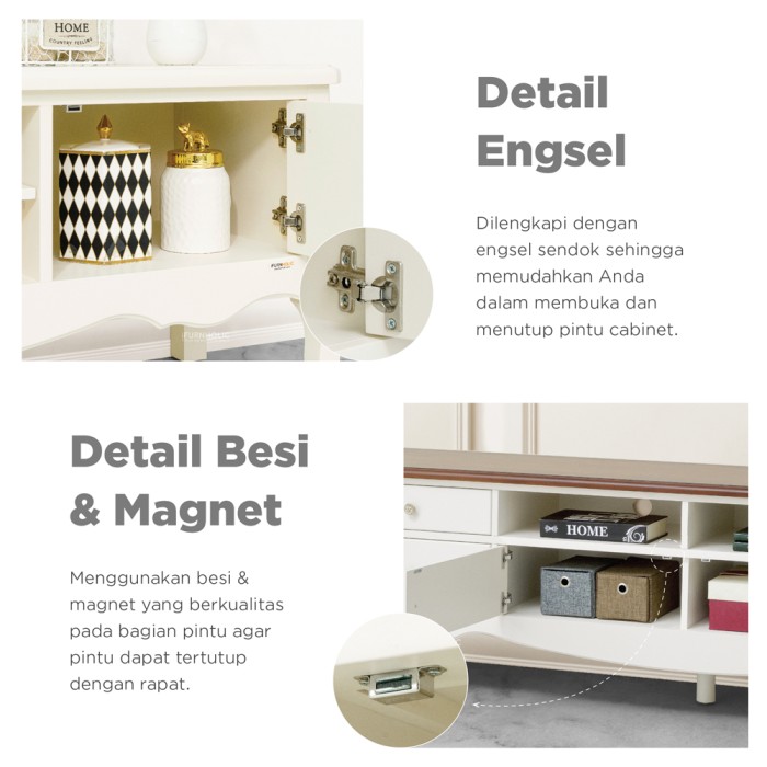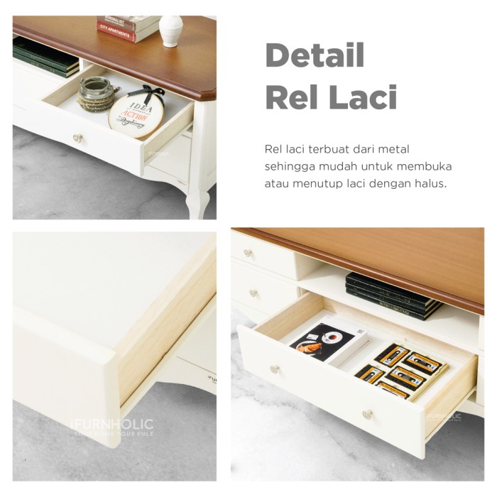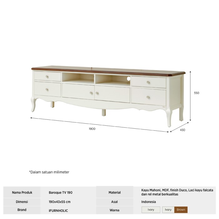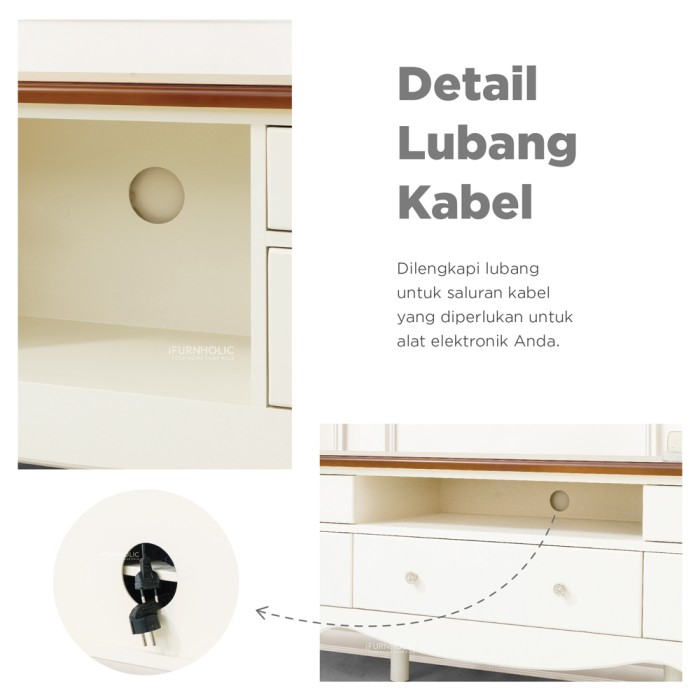 IFURNHOLIC BAROQUE TV CABINET 190 | MEJA TV KLASIK | RAK TV KAYU - IVORY
