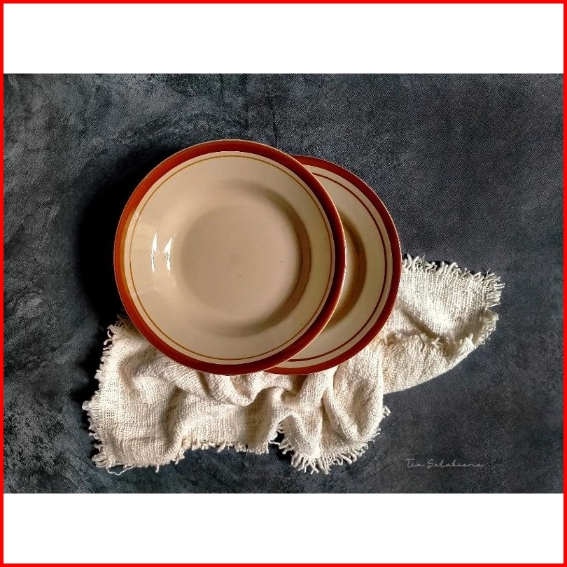Piring Keramik List Coklat Biru Hijau 6 Biji Piring Keramik Linea 6biji Piring Makan Keramik Jadul Piring Makan Keramik