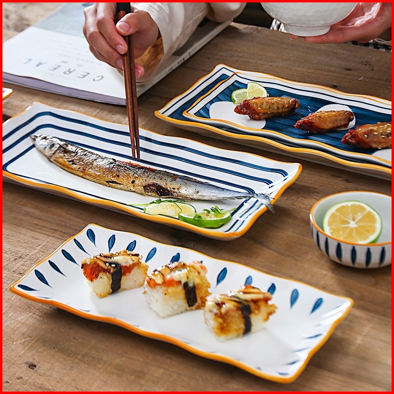 Ashome Piring Saji Dan Lauk Keramik Oval Motif Jepang Tahan Panas Dan Microwave Safe Piring Saji Keramik Jepang Fish Pla