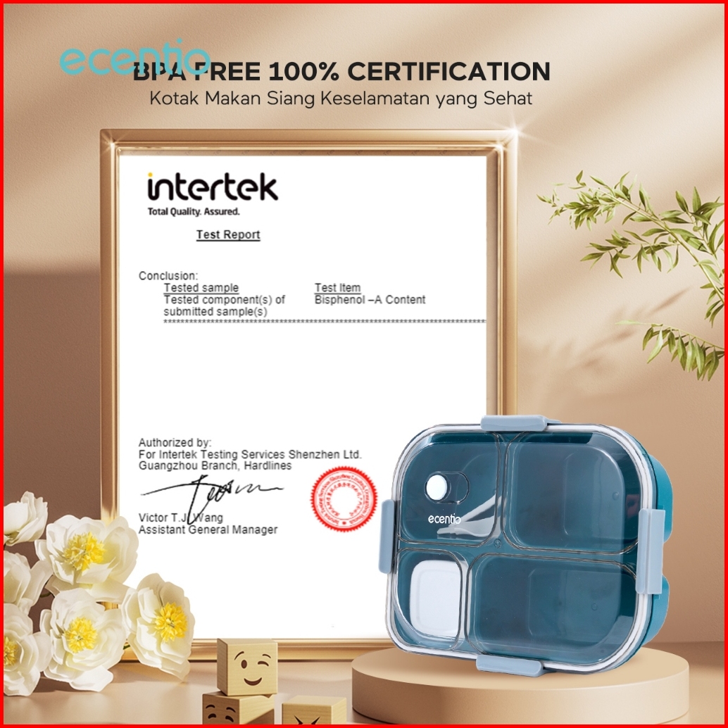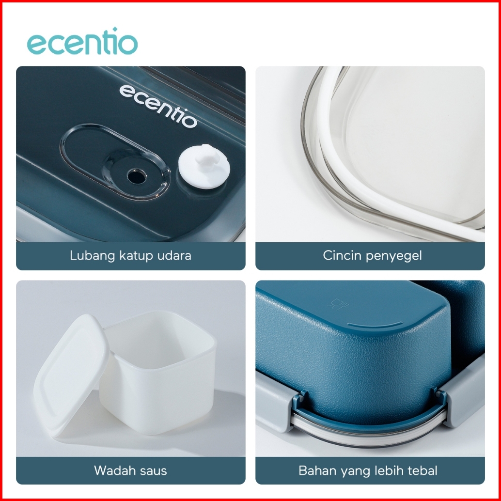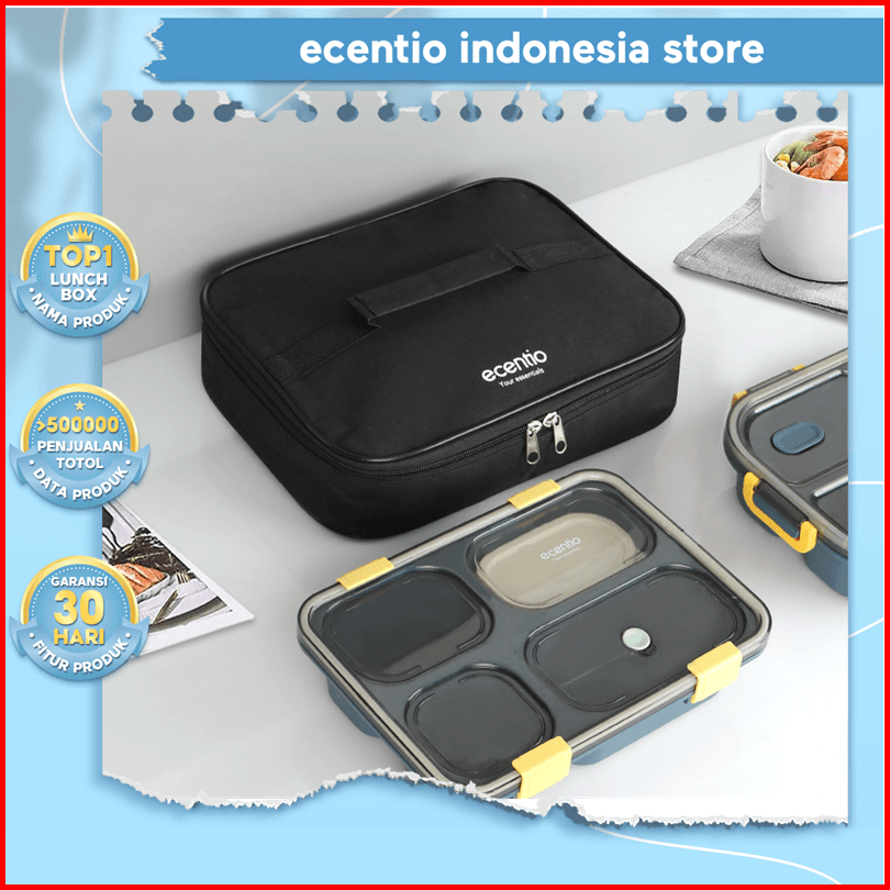 Ecentio Tempat Makan Set Lunch Box Set Tas 3 4 Grid Lunch Box Set Anti Tumpah Kotak Makan Plastik Kotak Makanan Kotak Be
