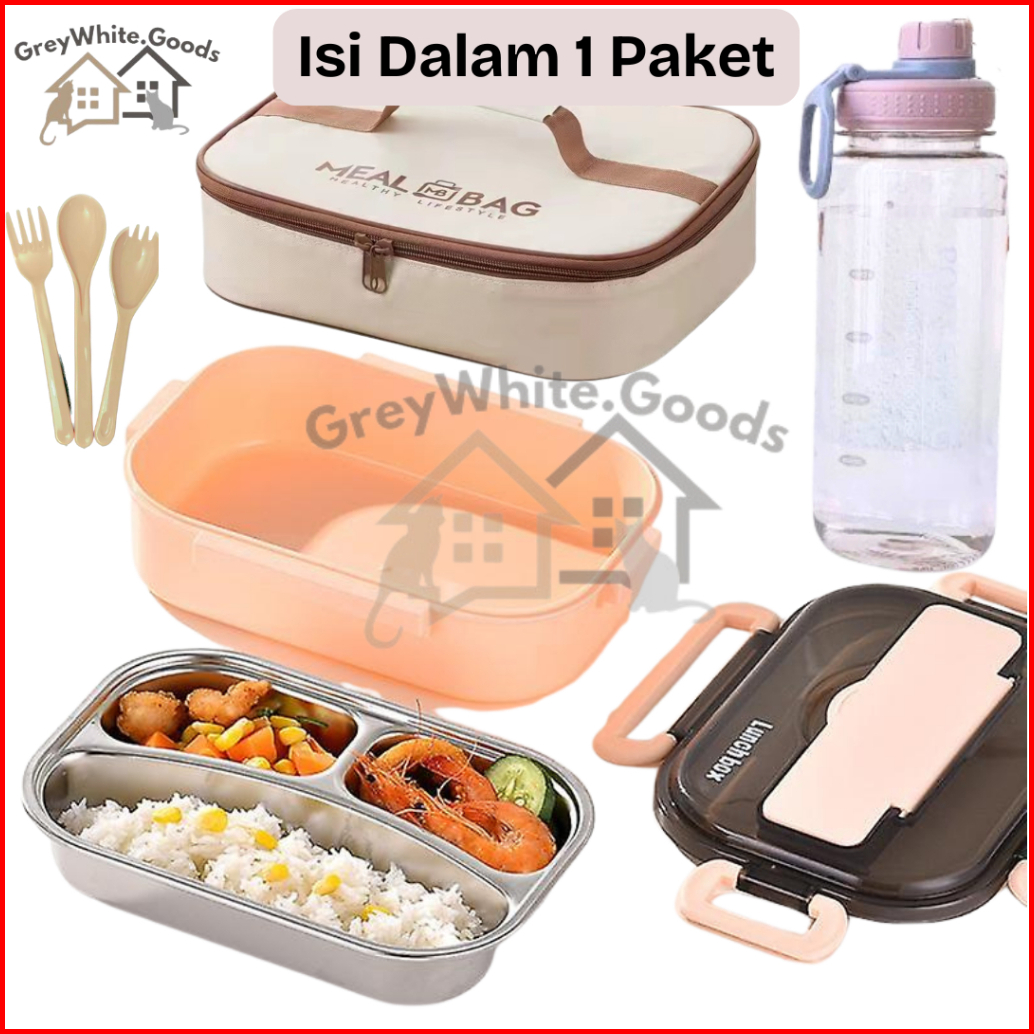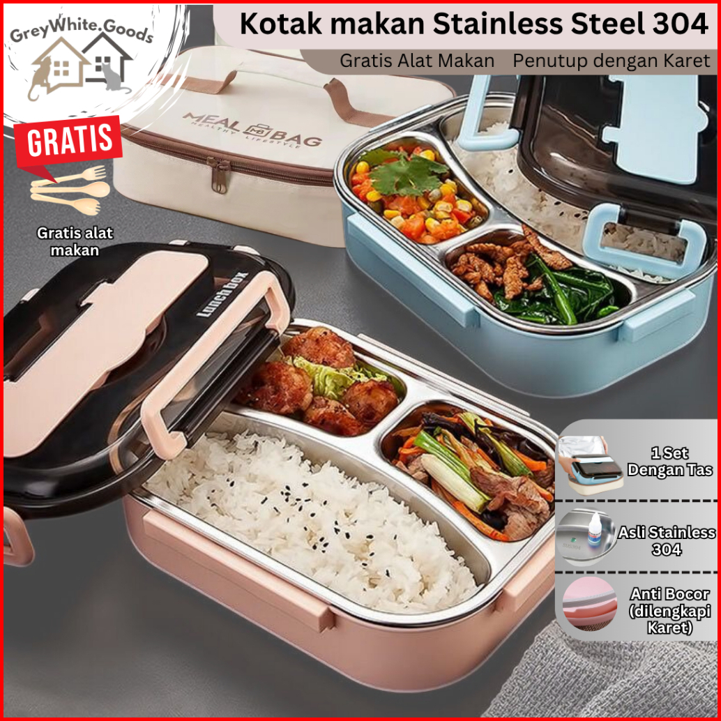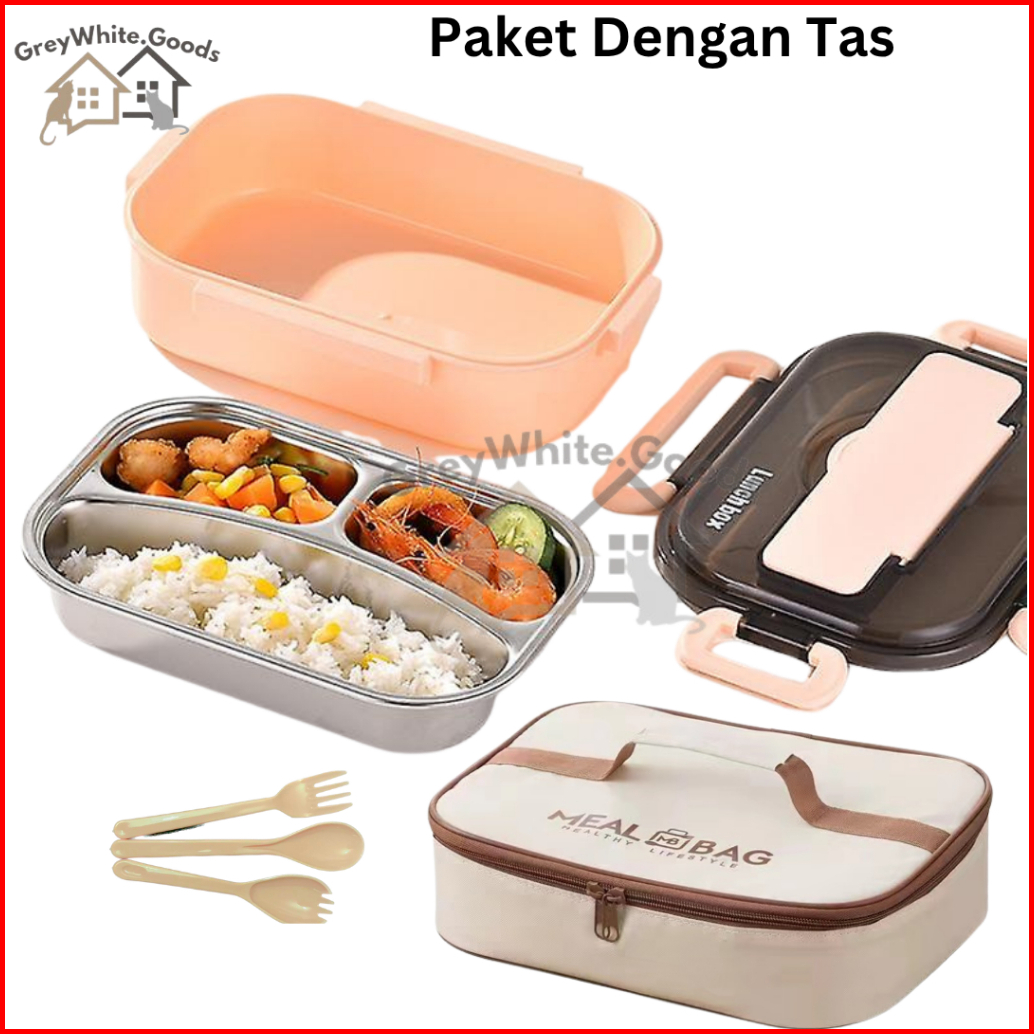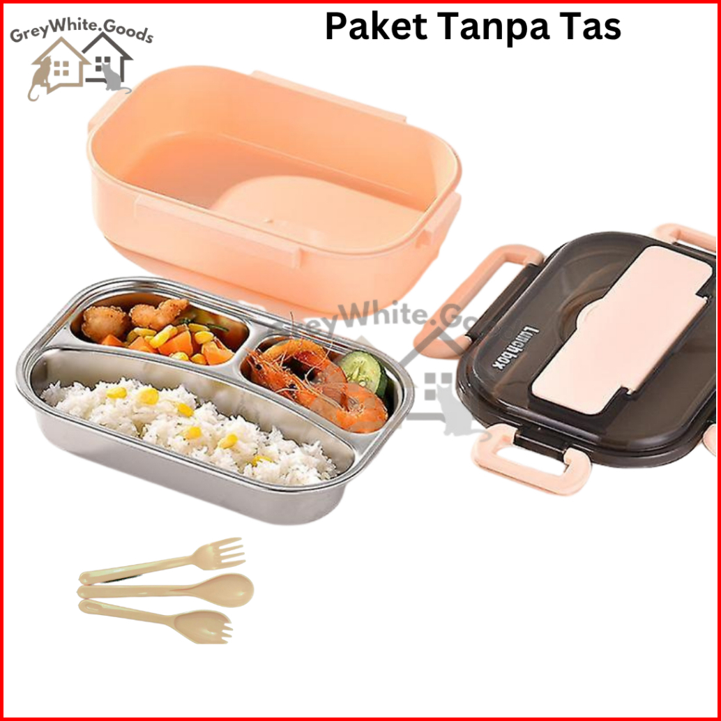 Gw Kotak Makan Stainless Set Dengan Tas Food Grade 304 High Quality