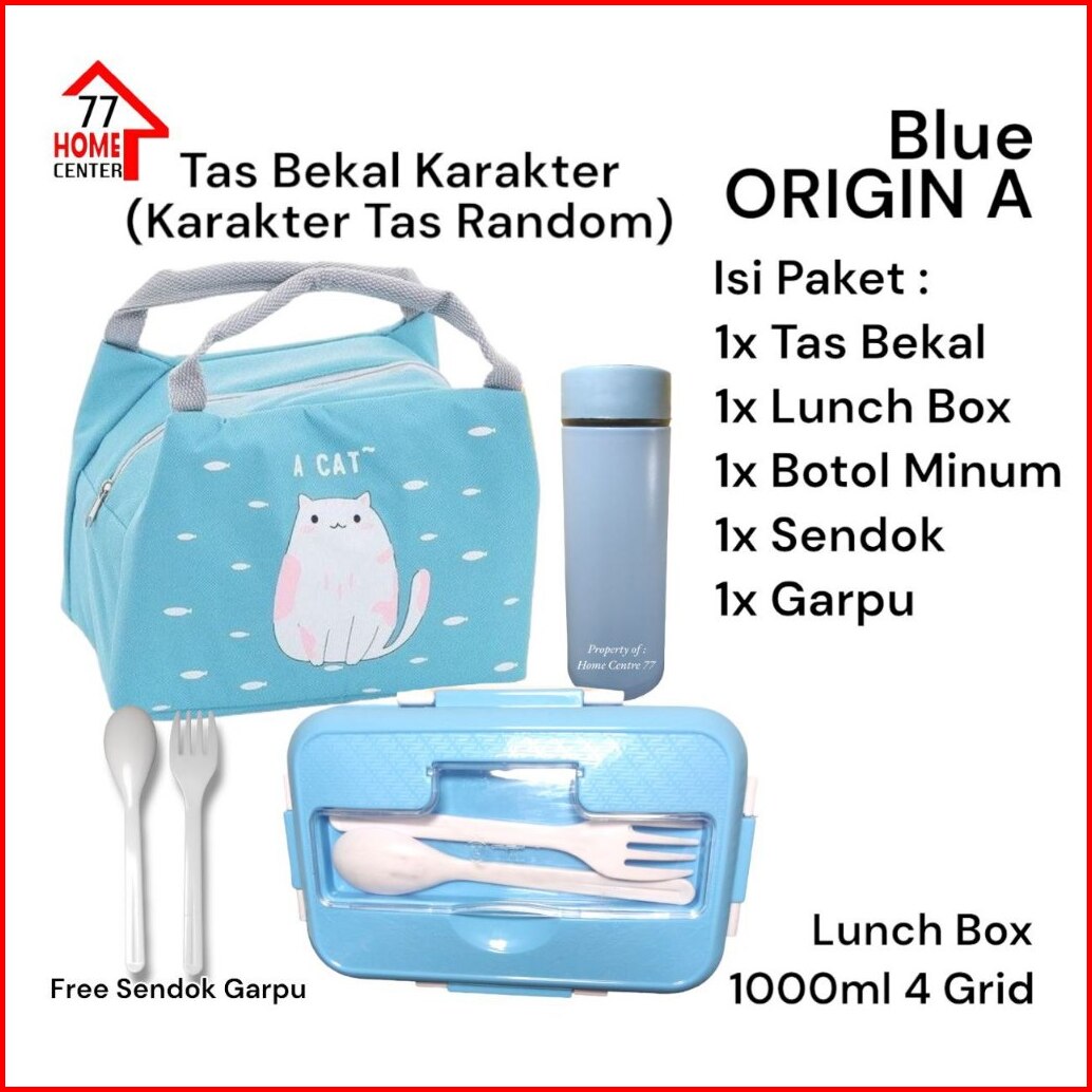 Origin A Set Kotak Makan Sendok Garpu Tas Bekal Lebih Besar Botol Minum Paket Set Kotak Bekal Makan 1000ml 4 Grid Lunch