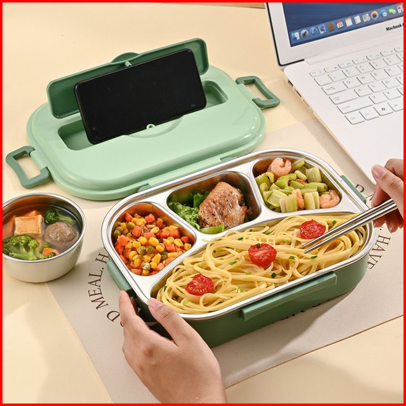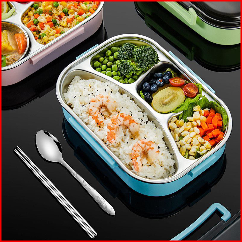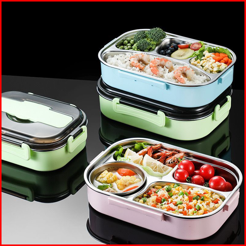 Kotak Makan Stainless Lengkap Dengan Alat Makan Lunch Box Stainless Tahan Panas Dan Anti Tumpah