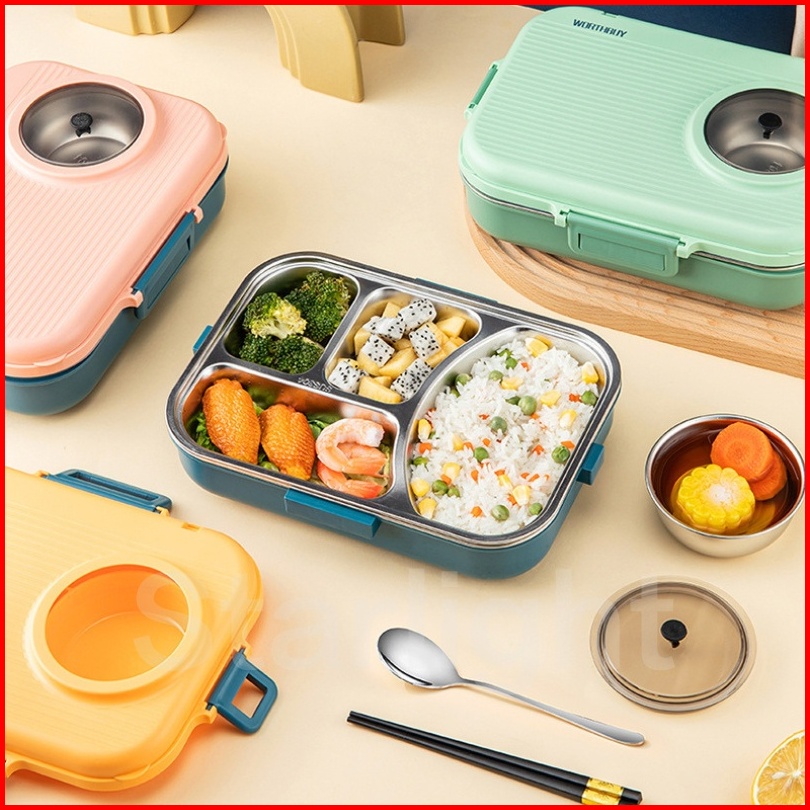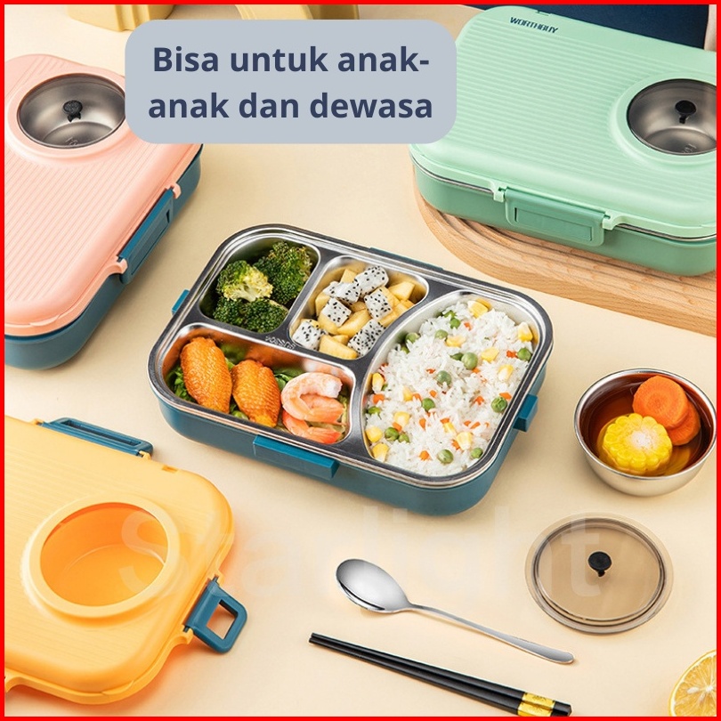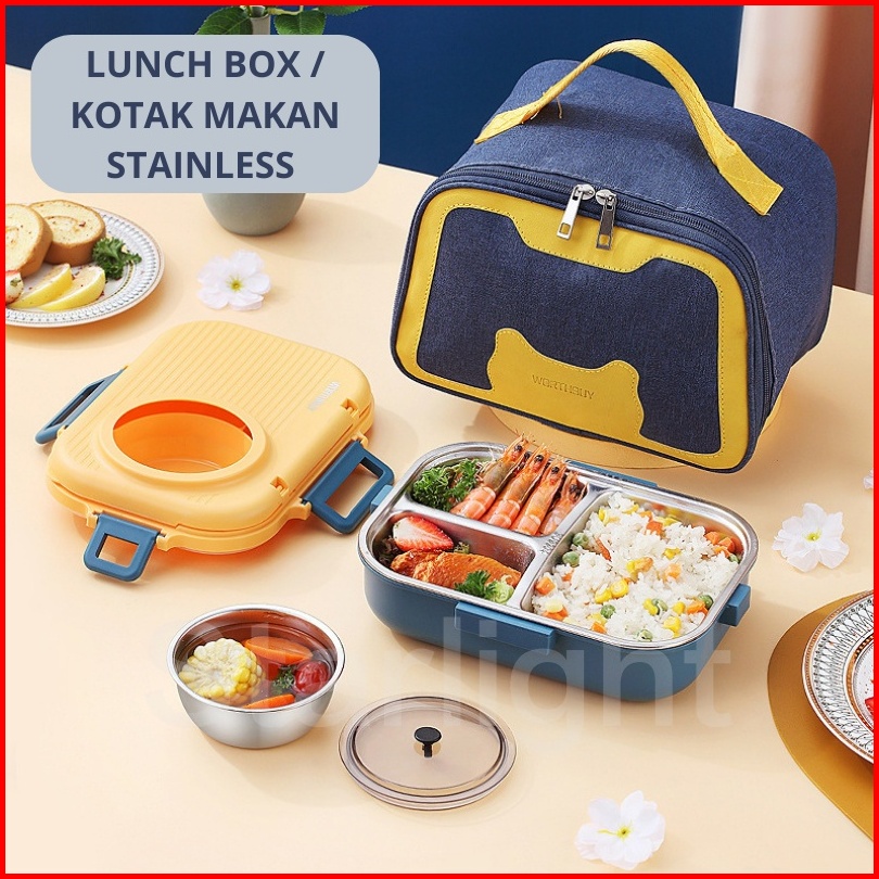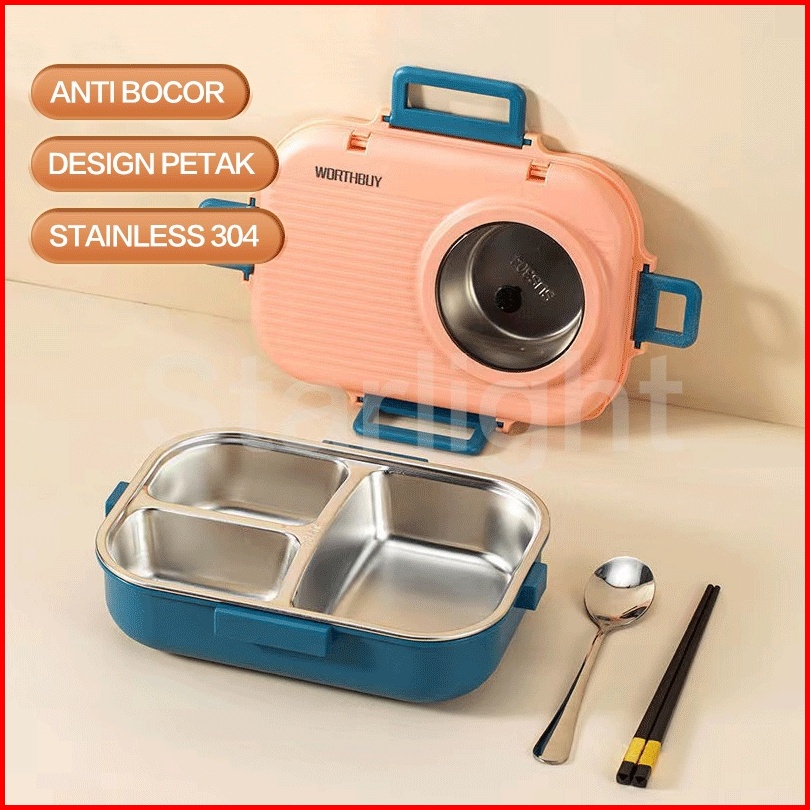 Starlight Kotak Makan 3 Sekat Lunch Box Stainless Tahan Panas Dan Anti Tumpah Tempat Bekal 900ml Hmb103