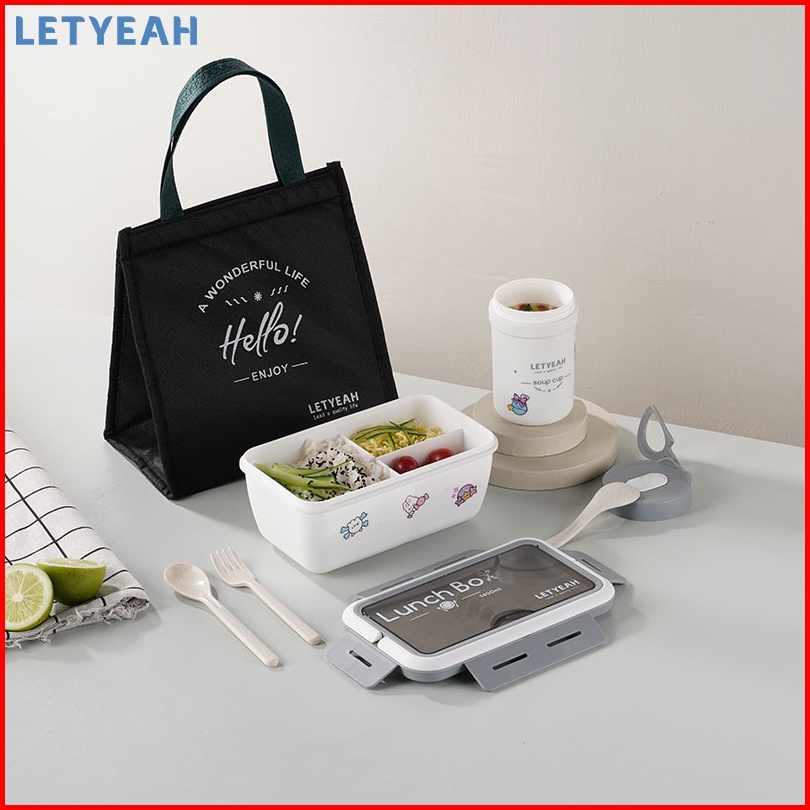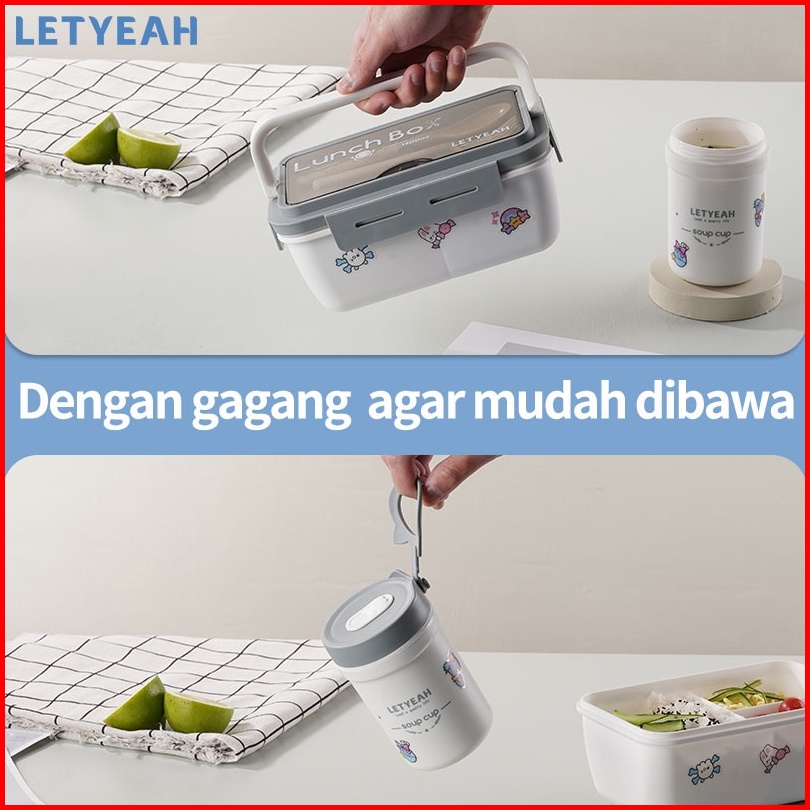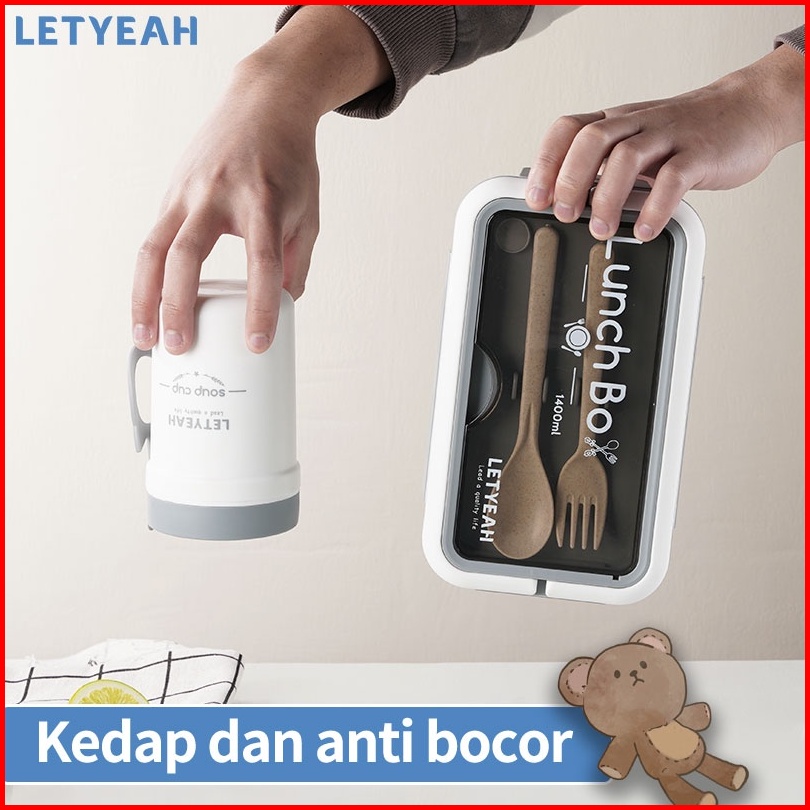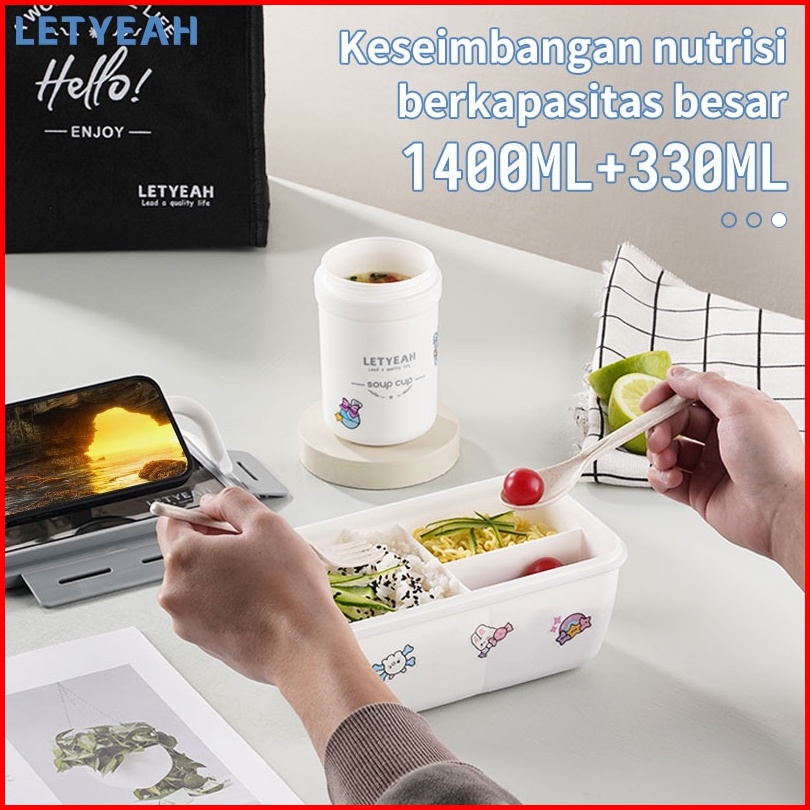 Letyeah Lunch Box Set Diy Sticker Kotak Makan Tempat Mankan 1400ml Dan Mangkuk Sup Portable 330ml
