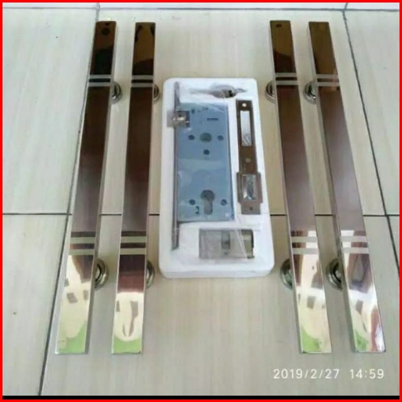 Fullset 60cm 45cm Handle Pintu Rumah 1set Kunci Stainless Gagang Pintu Stainless Asli