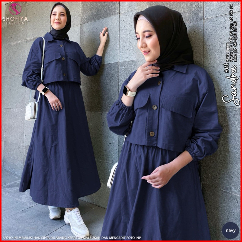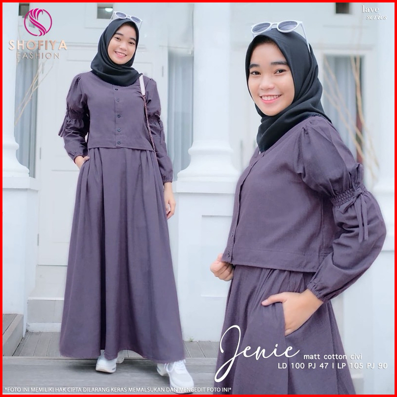 Vican Jenie Sandra Oneset Inner Outer Setelan Polos Gamis Wanita Bahan Cey Airflow Uragiri New Arrival Best Seller Origi
