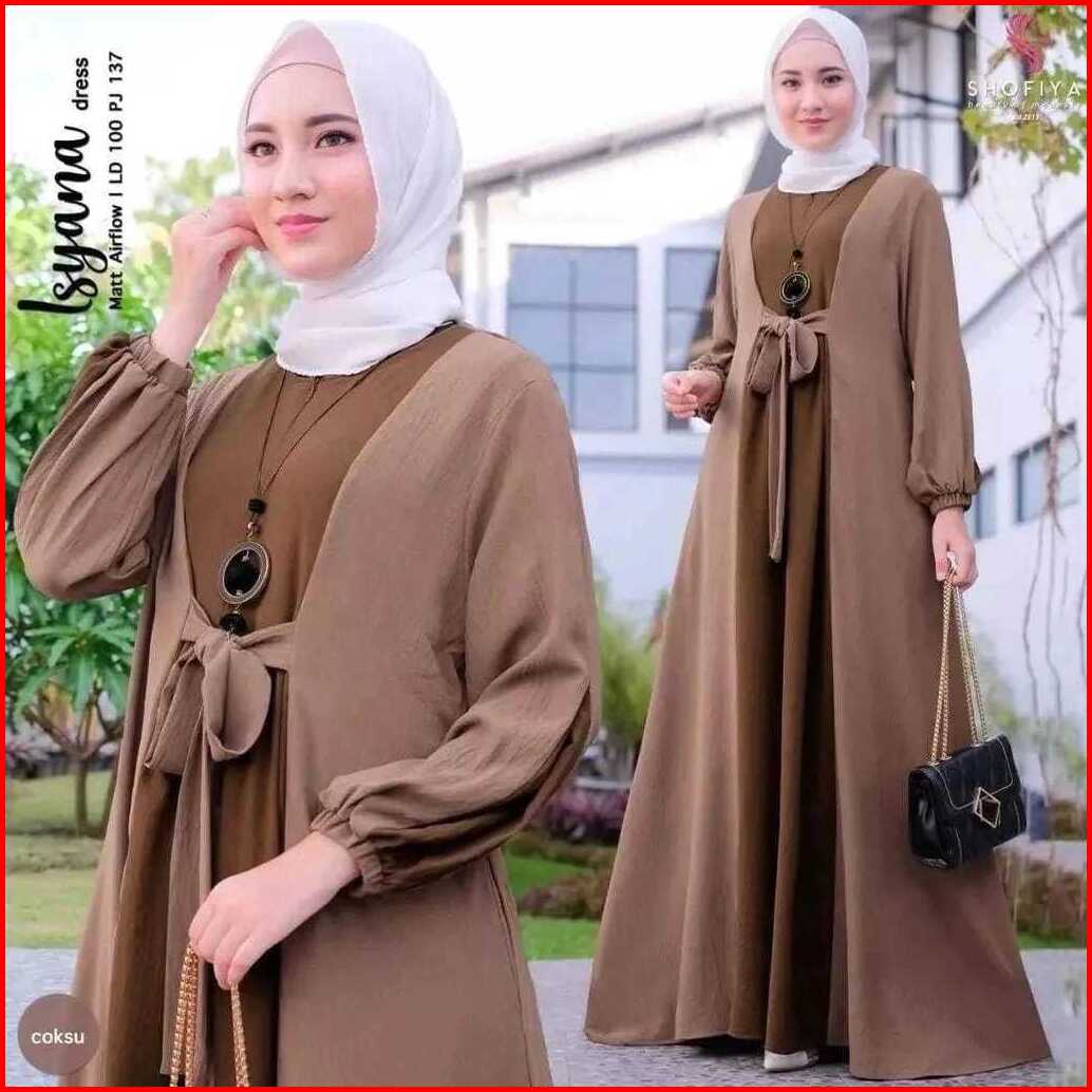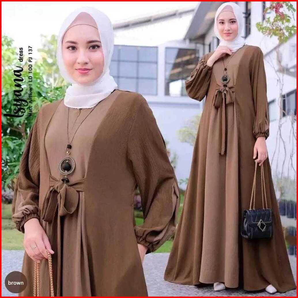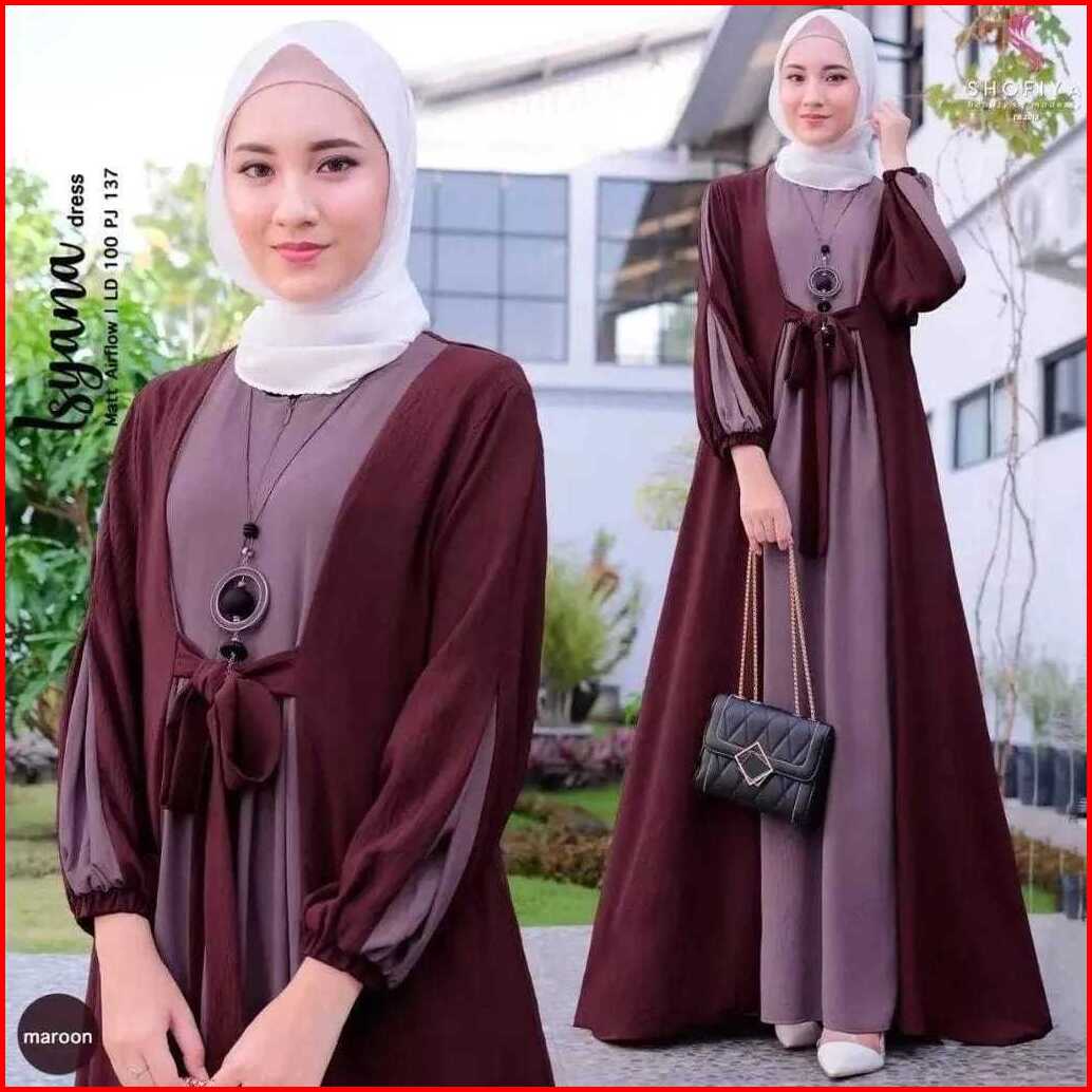 Baju Gamis Isyana Dress Terbaru 2024 Baju Kondangan Wanita Kekinian Long Muslim Busui Friendly