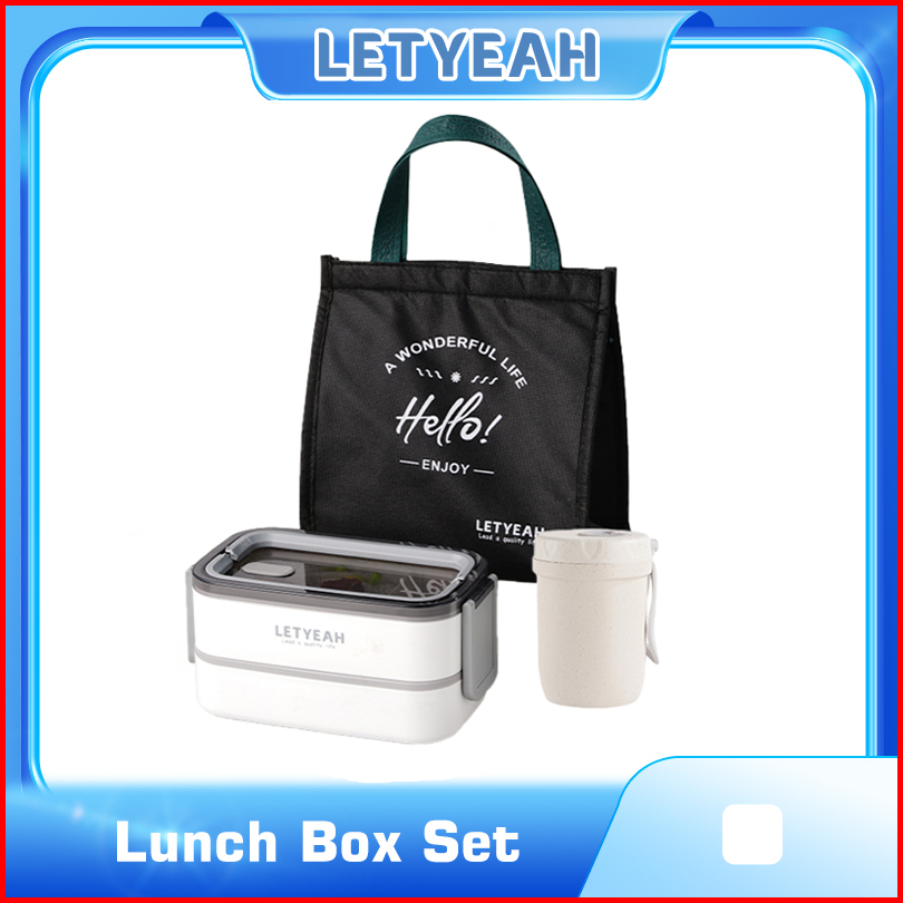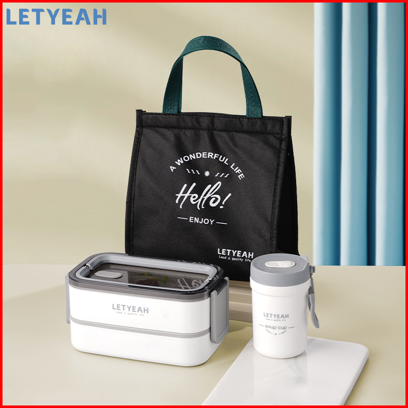 Letyeah Kotak Makan Anti Tumpah Lunch Box 1600ml Dan Cangkir Sup Tahan Panas Lunch Box Set Tempat Bekal Makan