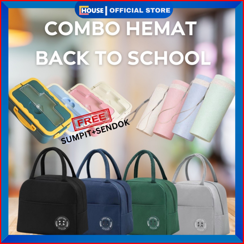 Combo Back To School 3 In 1 Kotak Makan Set Lunch Box Set Lunch Bag Set 3 Pcs