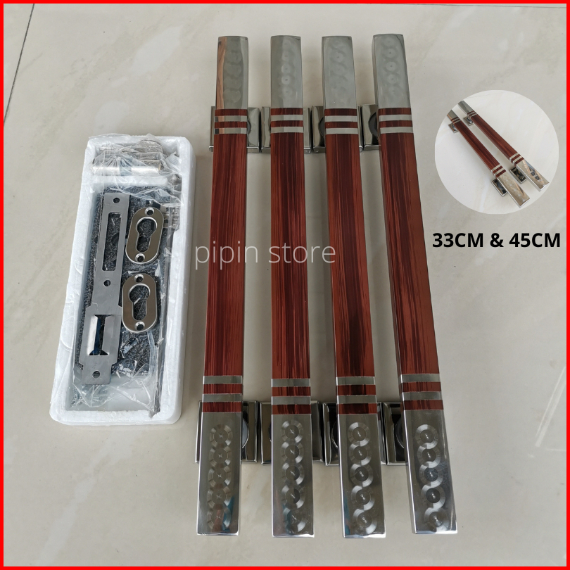 Paket Handle Pintu Rumah 45cm Dan 33cm 1 Set Body Kunci Pelor Murah Minimalis Tarikan Pintu Gagang Pintu Rumah Stainless