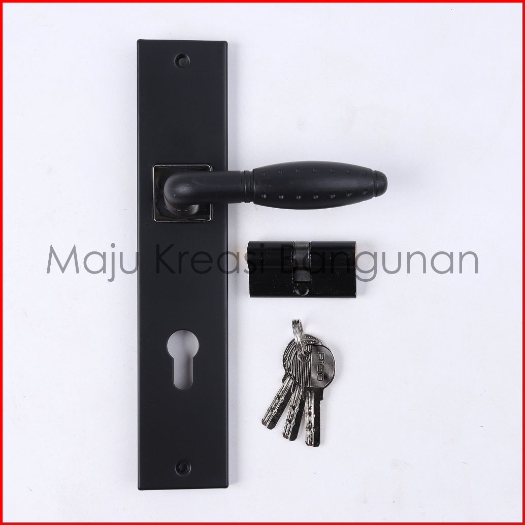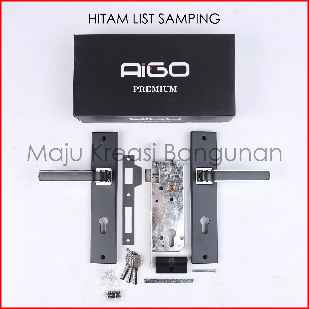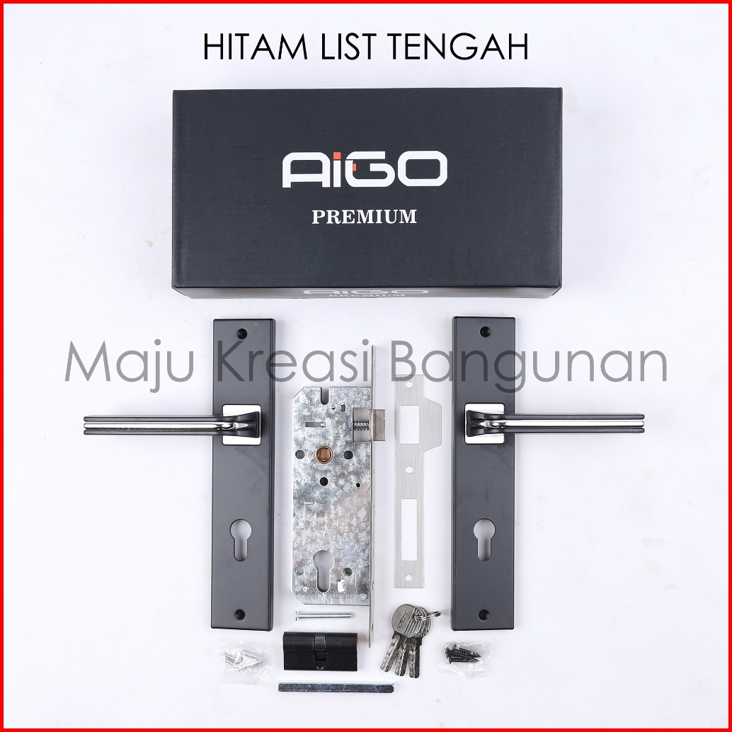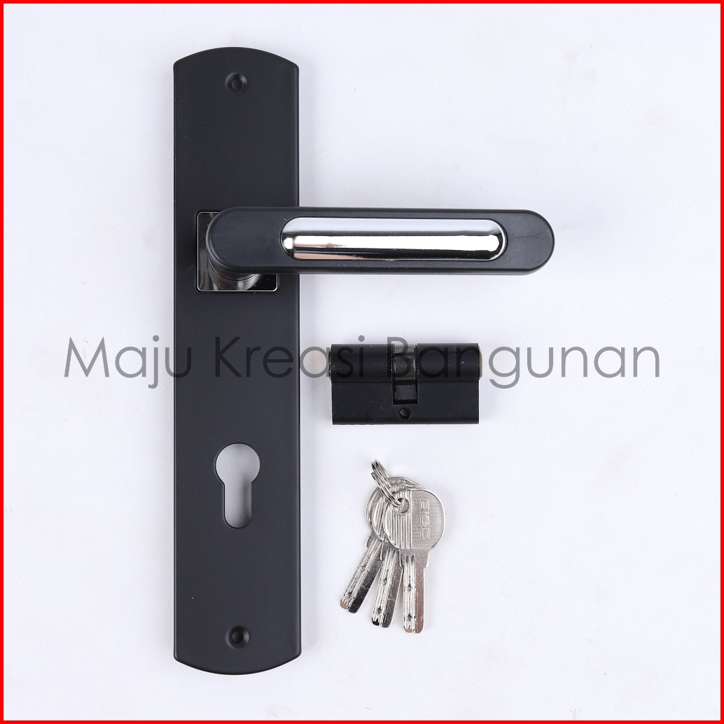 Handle Pintu Ukuran Besar Set Aigo Hitam List Silver Kunci Rumah Anak Gagang Handel Granat
