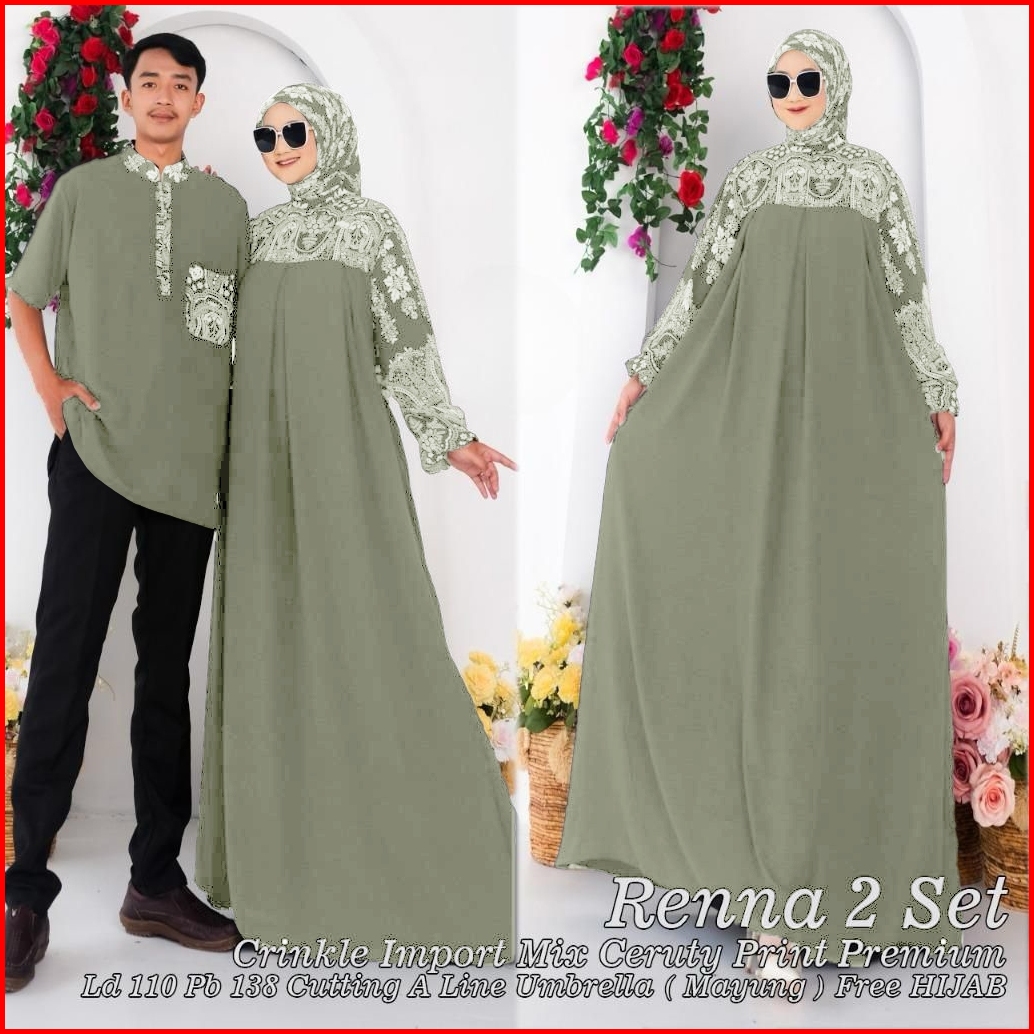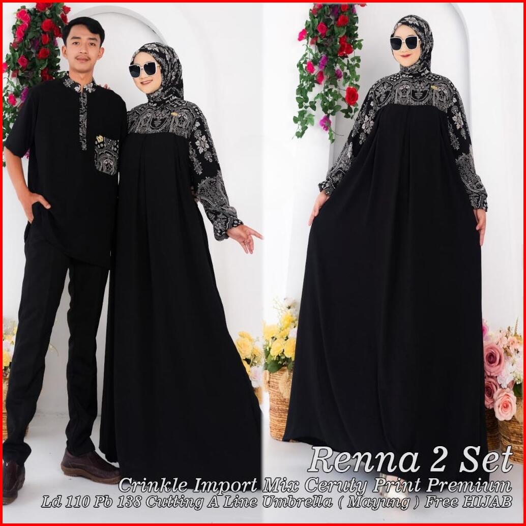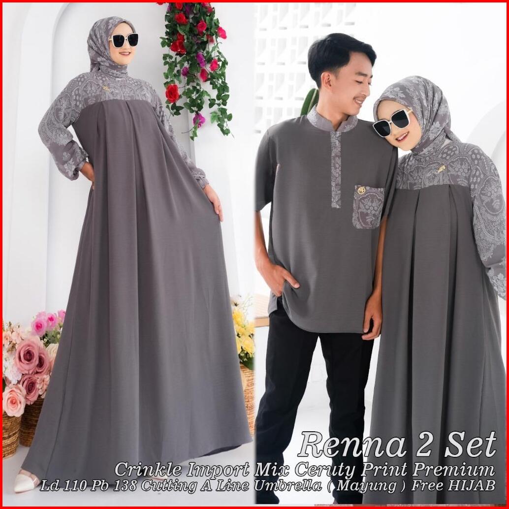 Renna Sarimbit Dress Crinkle Import Mix Ceruty Print Premium Free Pashmina Busui Dan Wudhu Friendly