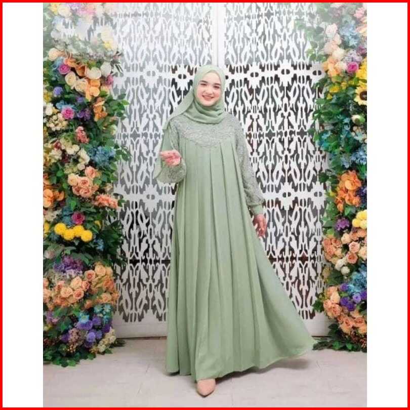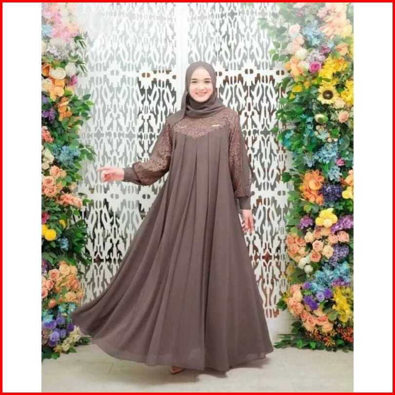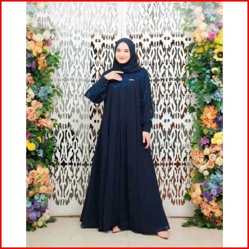 Inara Dress Gamis Ceruty Terbaru 2025 Elegan Mix Brukat Modern Gamis Viral Kekinian