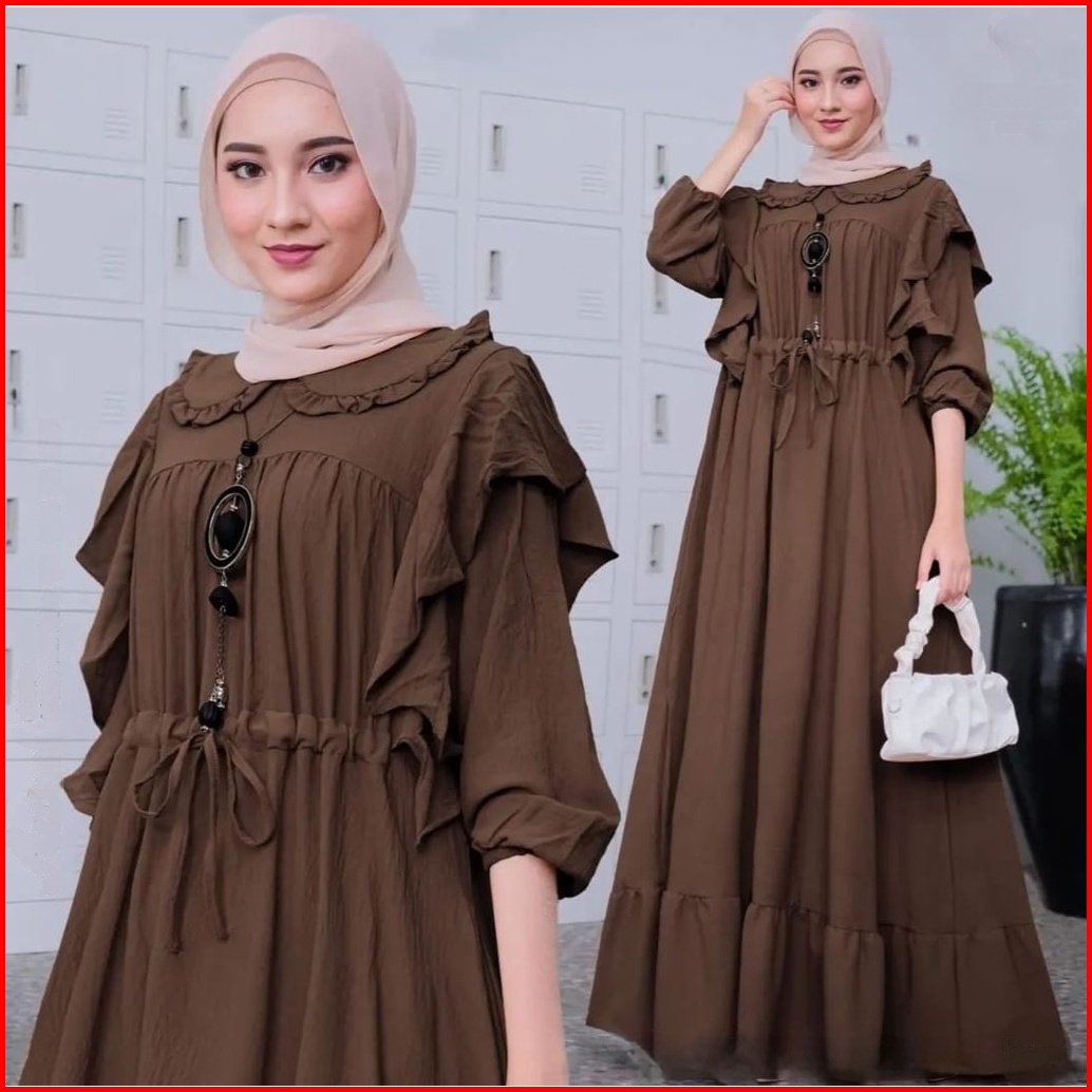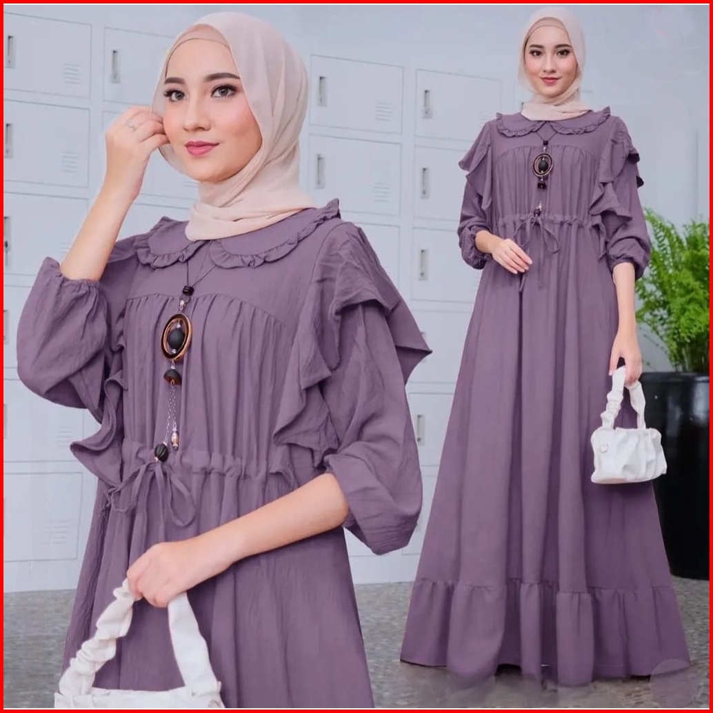 Baju Gamis Dress Wanita Terbaru 2025 Aurel Maxy Dress Busui Bahan Crinkle Premium Gamis Kondangan Model Baju Casual Musl