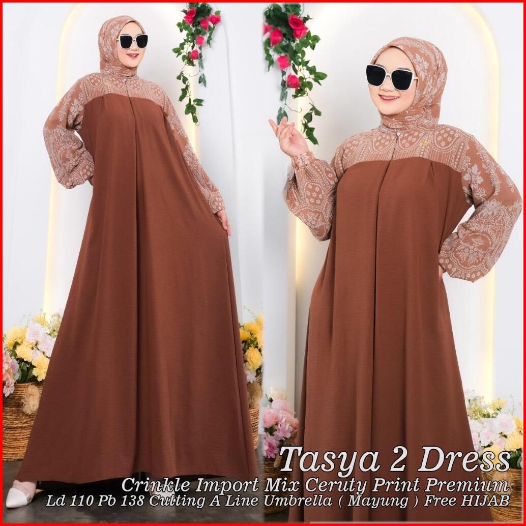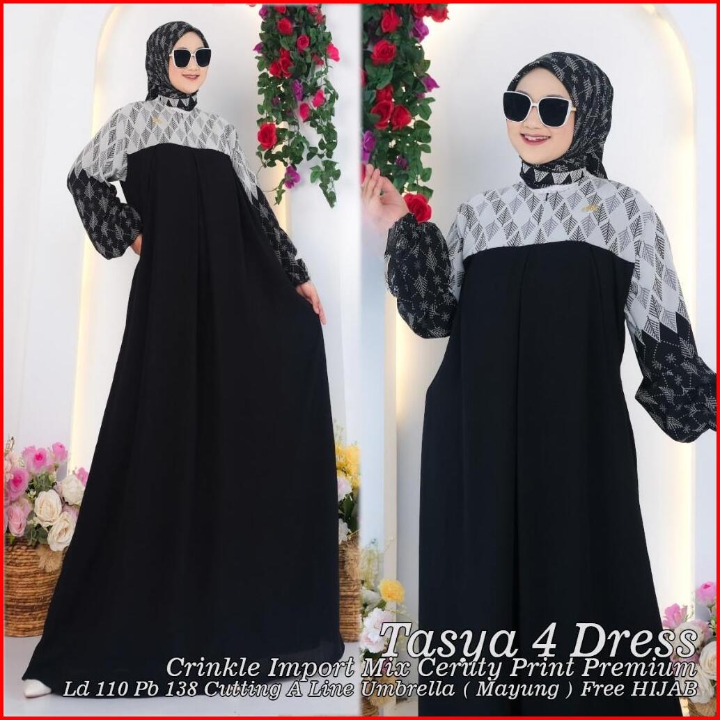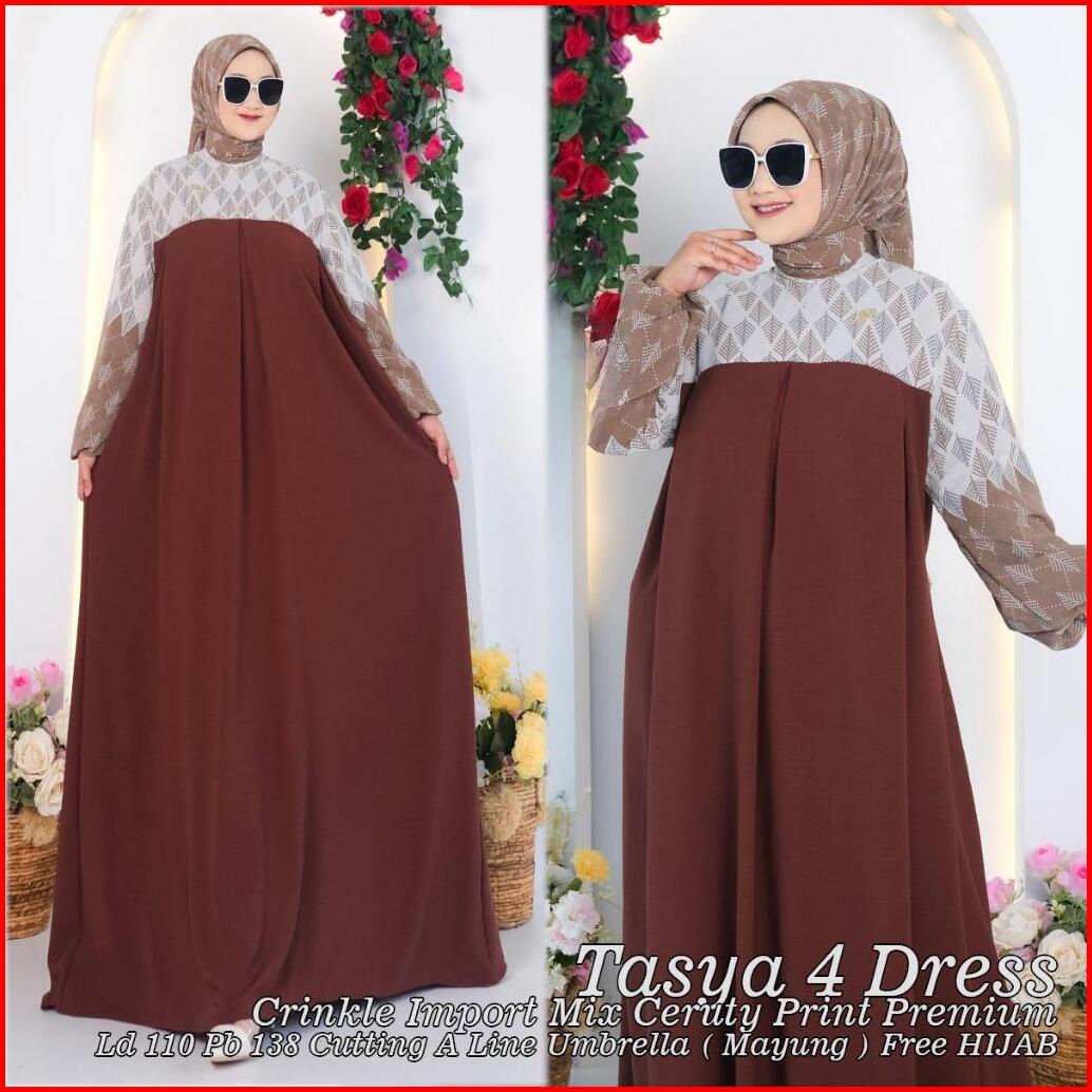 Gamis Tasya Dress Crinkle Import Mix Ceruty Print Premium Free Kerudung Segi Empat Busui Dan Wudhu Friendly