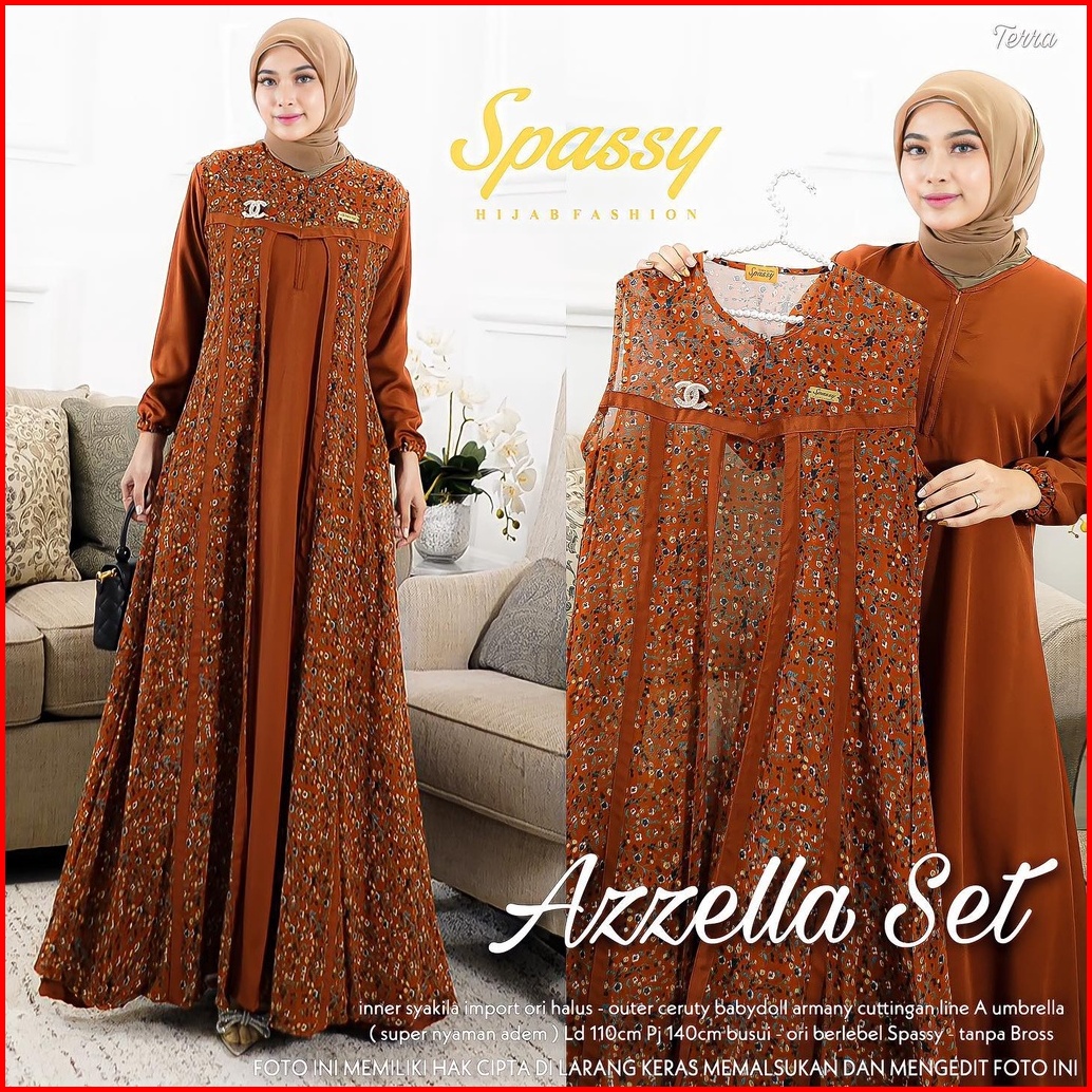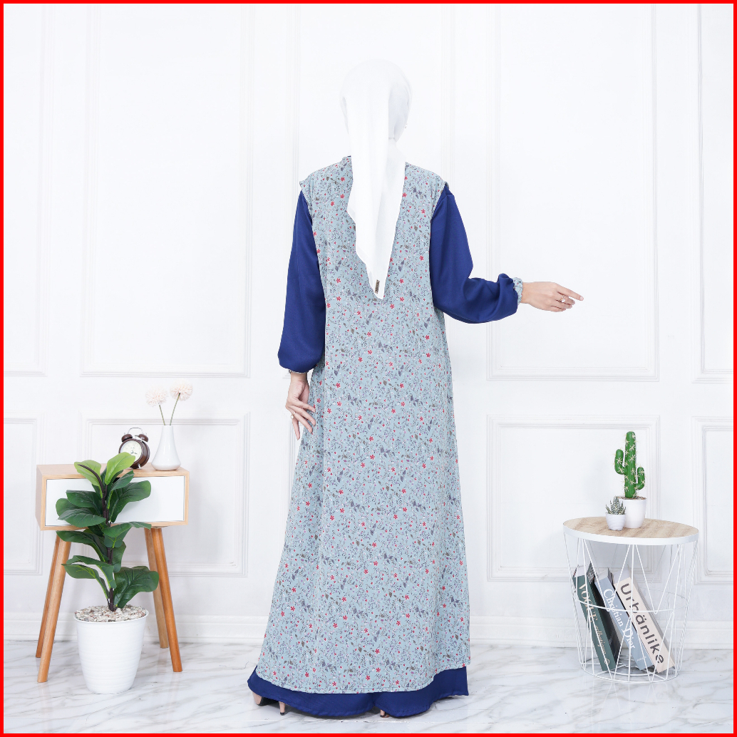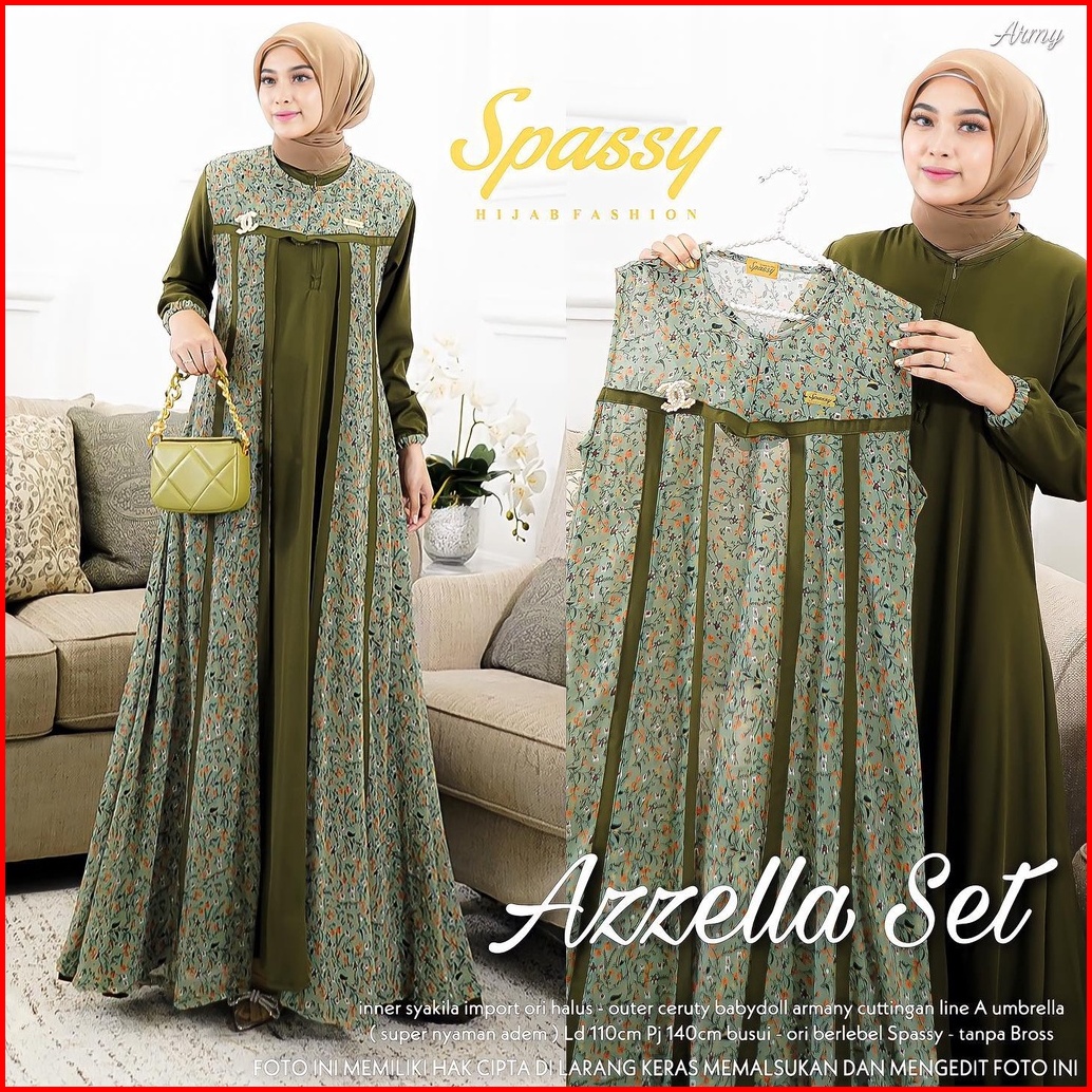 Gamis Terbaru Azzella Set 2 In 1 Dress Shakilla Salju Mix Ceruty Motif Import Terlaris
