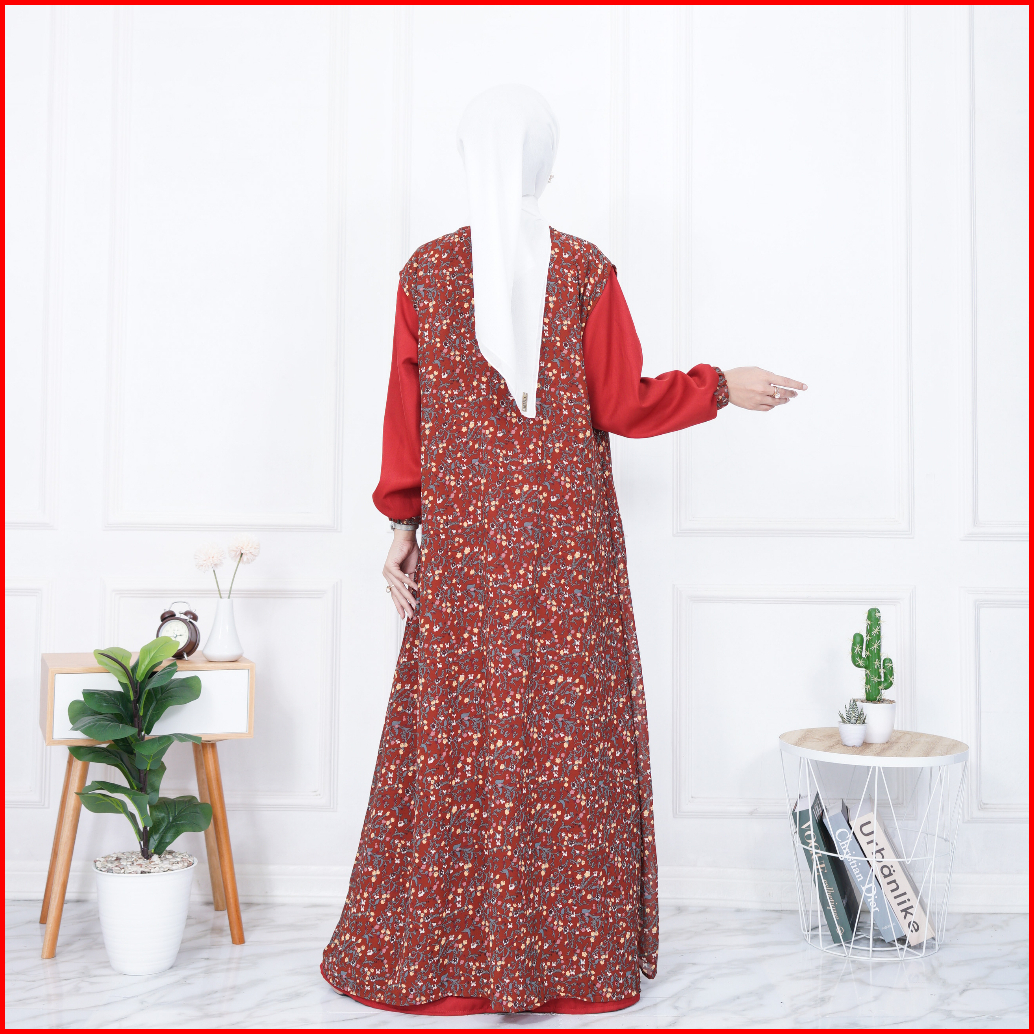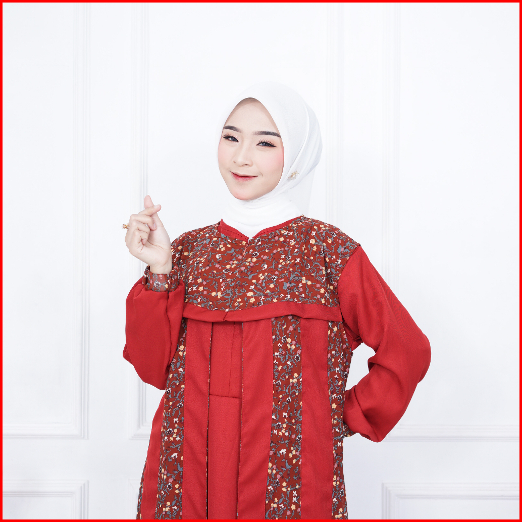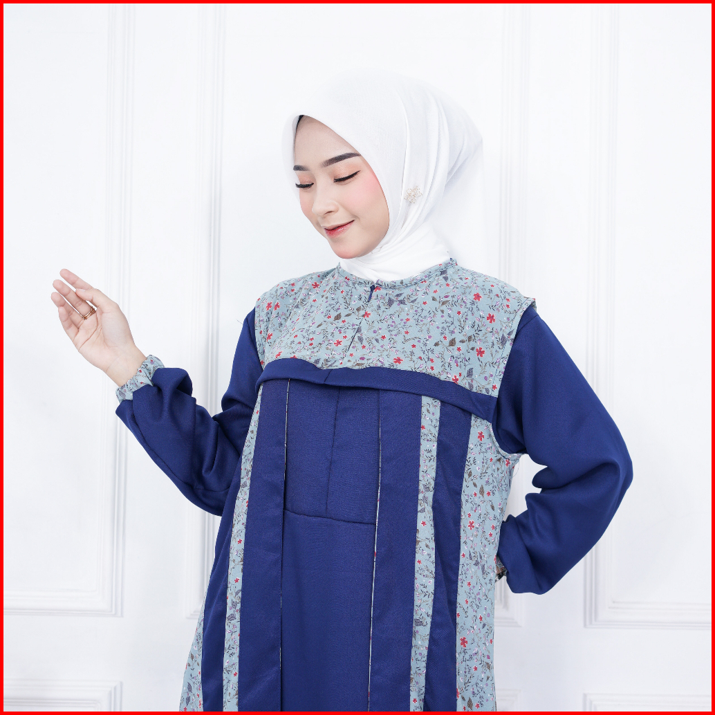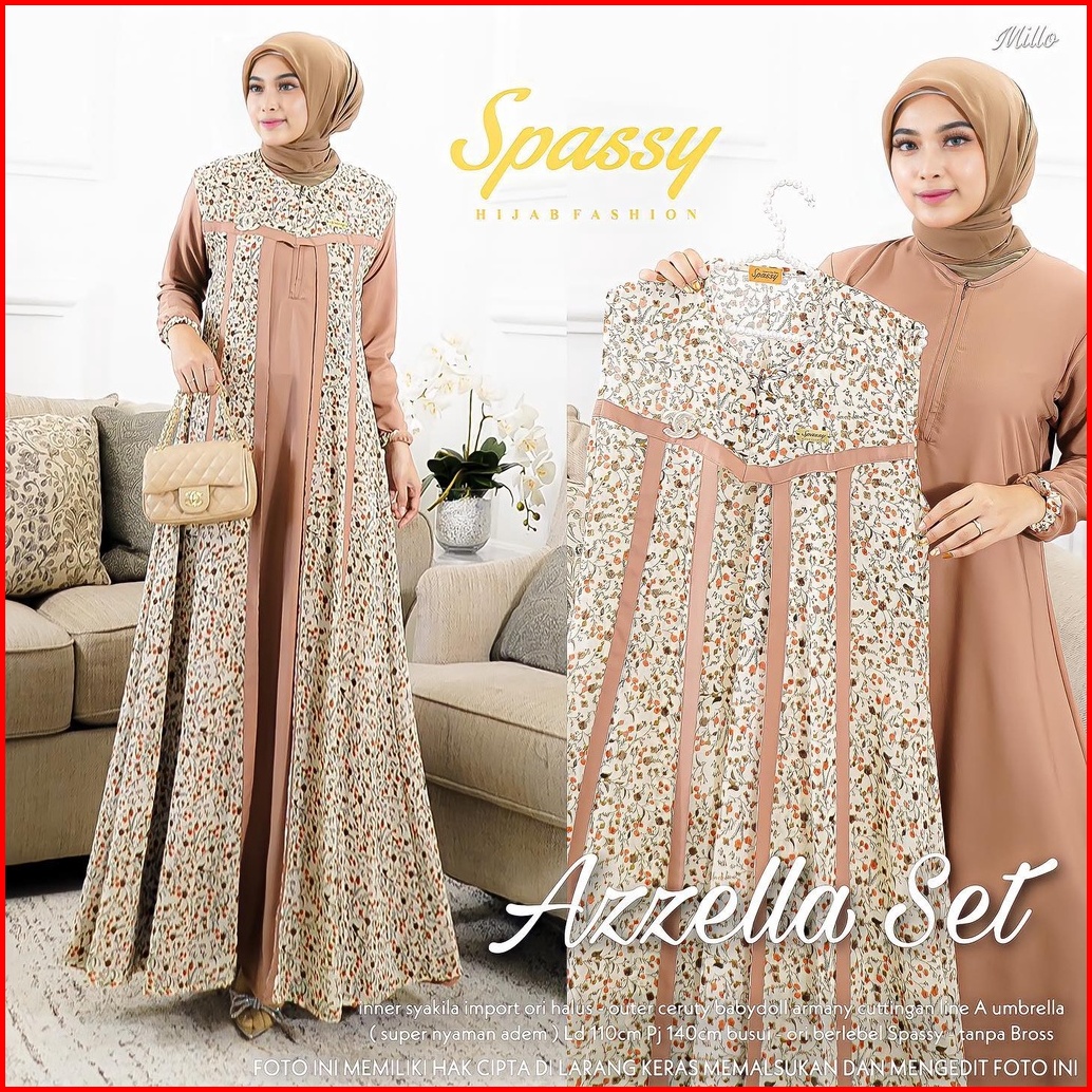 Gamis Terbaru Azzella Set 2 In 1 Dress Shakilla Salju Mix Ceruty Motif Import Terlaris