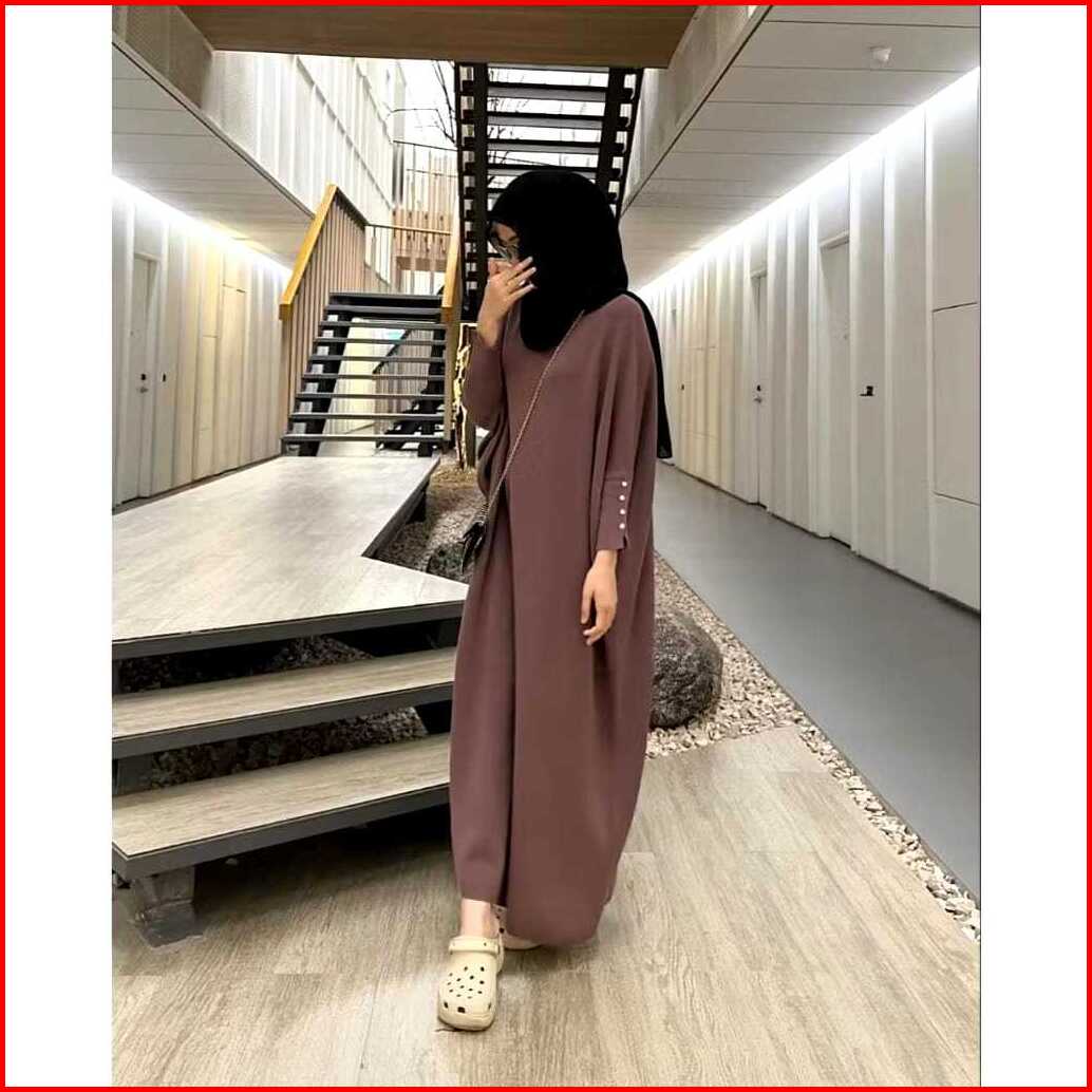 Batwing Dress Wanita Lengan Kancing Jumbo Bahan Rib Knit Premium Arabian Kaftan Lebaran 2025