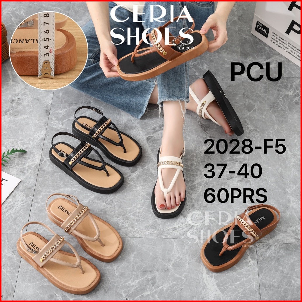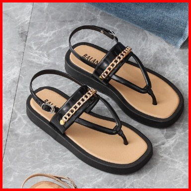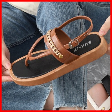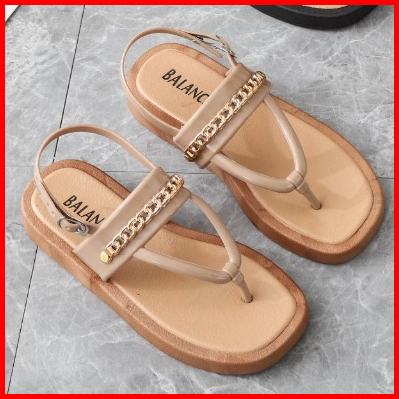 Sandal Tali Jepit Wanita Karet Jelly Import Motif Rantai Belakang Sol Elastis Empuk Anti Slip Balance 2028 -f5