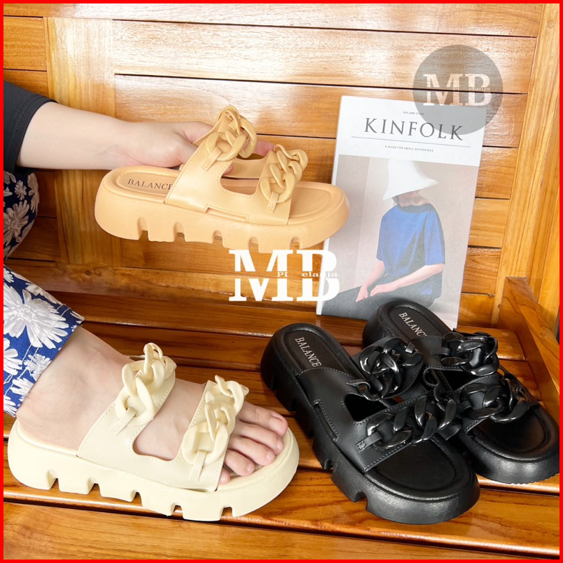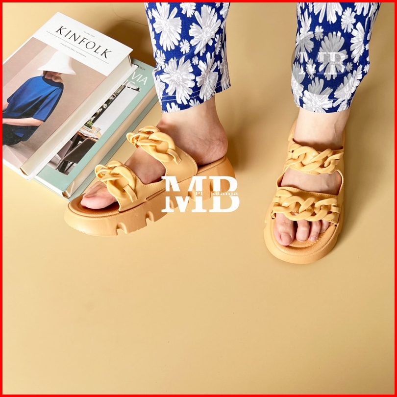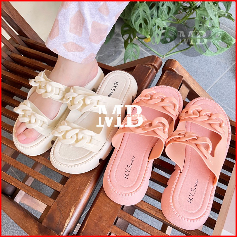Sandal Jelly Import Wanita Dewasa Slipper Rantai Slop Tebal Wedges Karet 2312