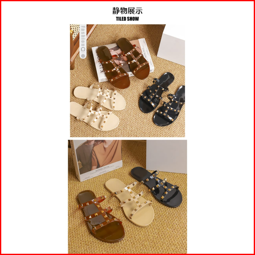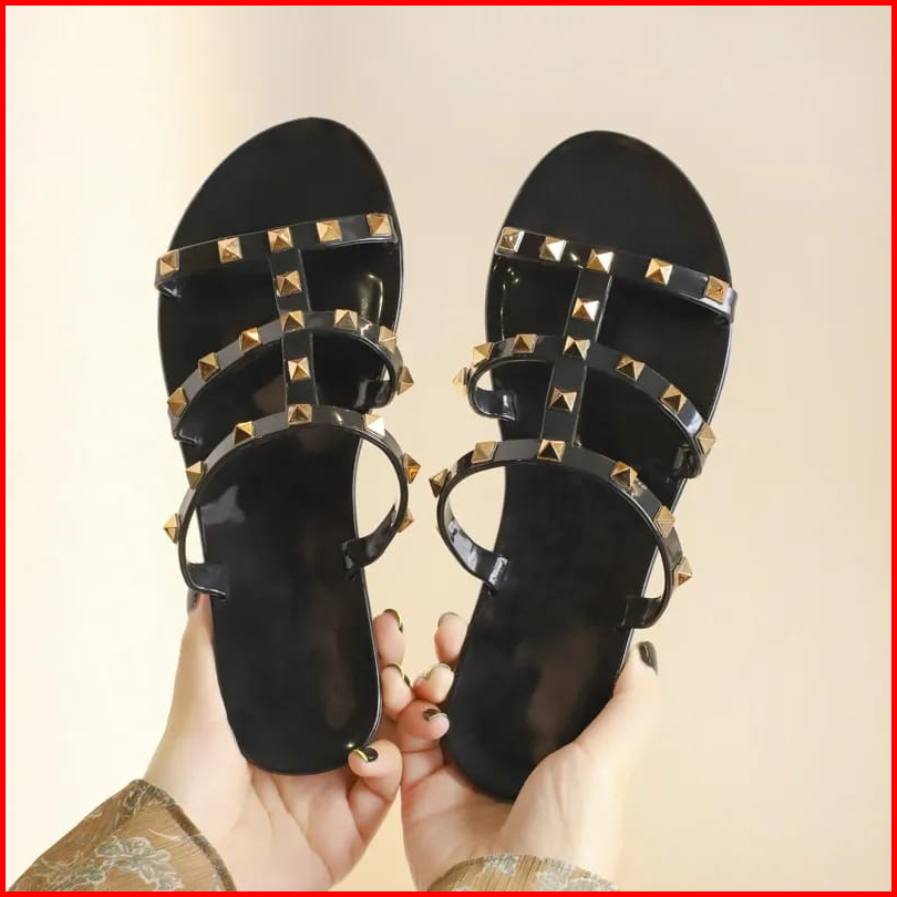 Sendal Wanita Jelly Stud Garis Nyaman Sandal Cewe New Ax