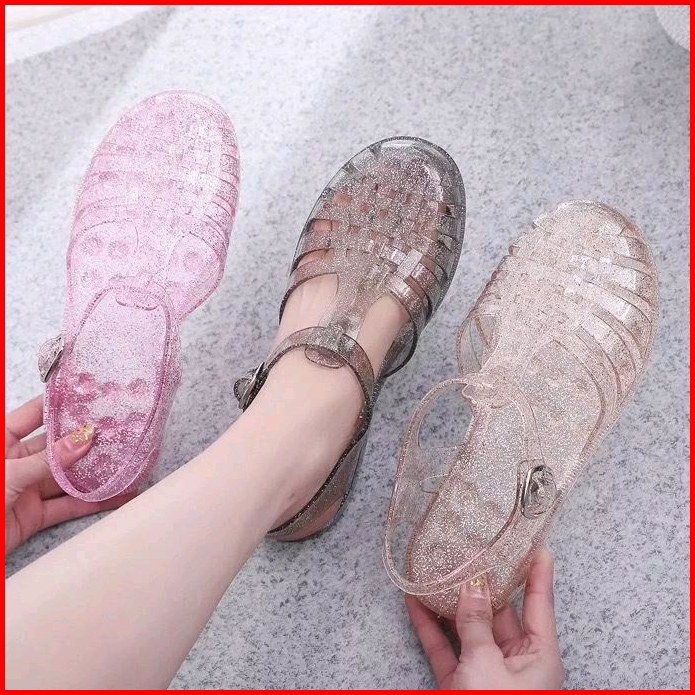 Balance Sepatu Sandal Karet Jelly Transparan Bening Sepatu Sandal Kaca Size 36- 40