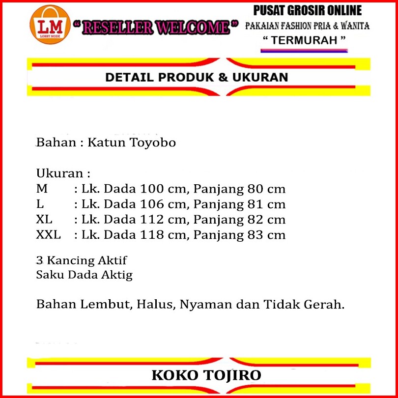 Termurah Baju Muslimin Koko Pria Koko Tojiro Bahan Toyobo Premium Berkualitas Lms 18844-18850