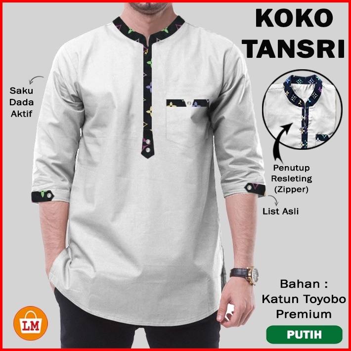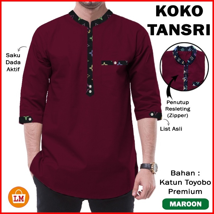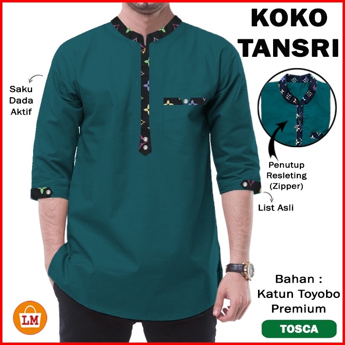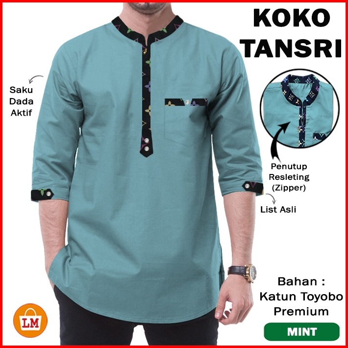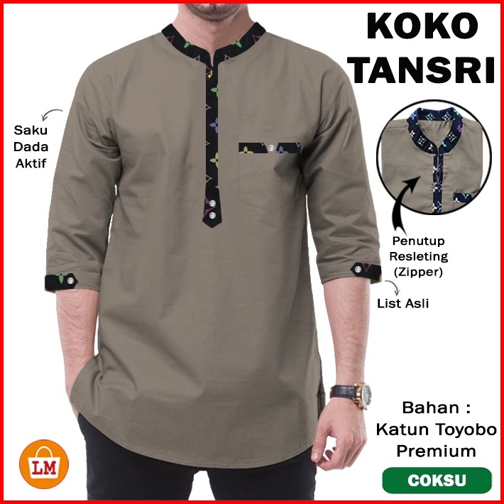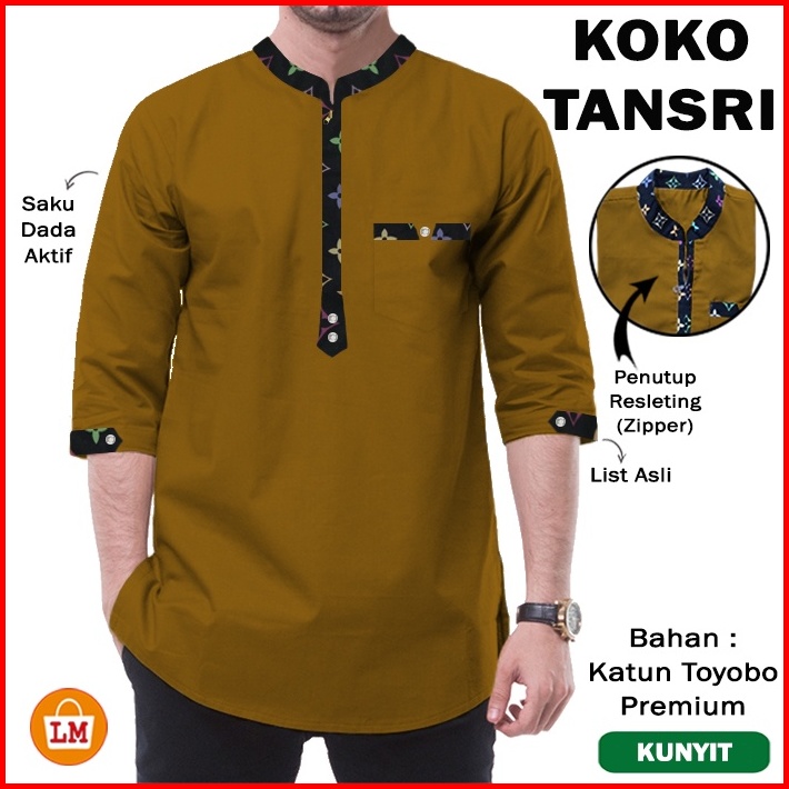 Lpm 29757 Baju Koko Pria Muslim Koko Tansri Katun Toyobo Lengan 3 4 Jumbo Oversize M-2xl