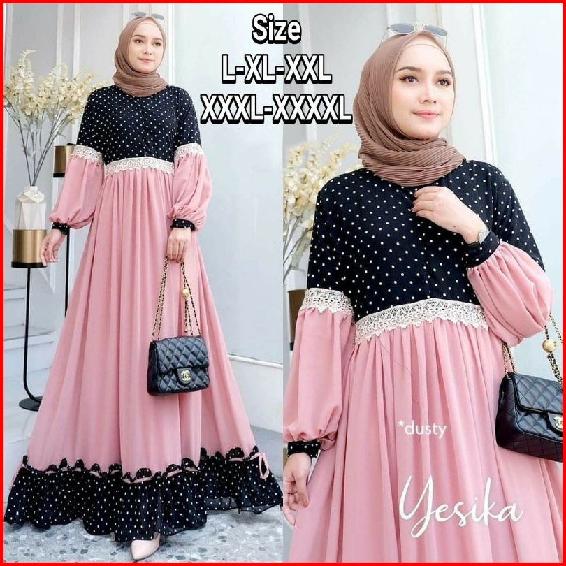 Gamis Lebaran 2025 Model Gamis Terbaru Yesika Termurah Ukuran Jumbo M L Xl Xxl 3xl 4xl Bahan Shakila