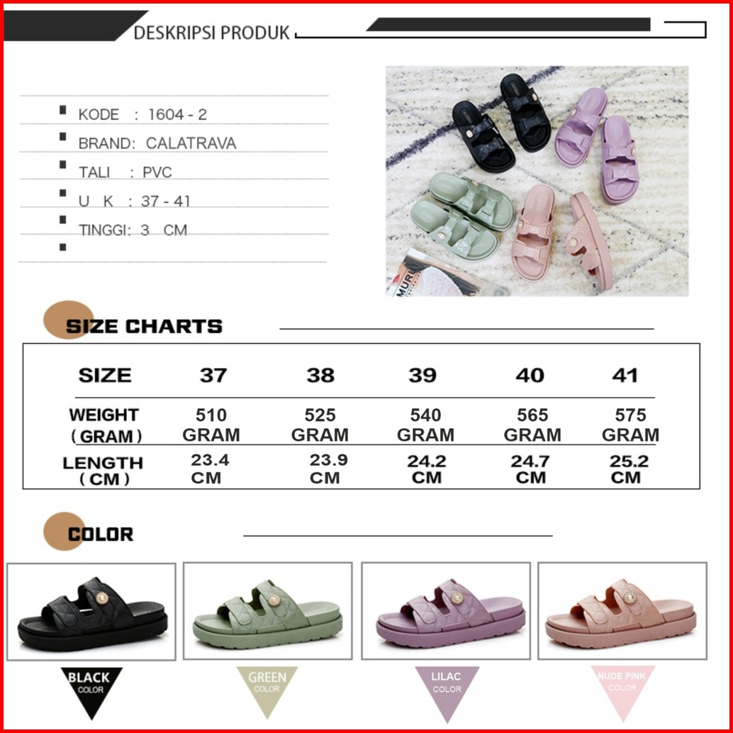 1604-2 Calatrava Sendal Jelly Sandal Wanita Rumahan Sandal Selop Sandal Karet Slop Sendal Pita Wanita Sandal Tali Sandal