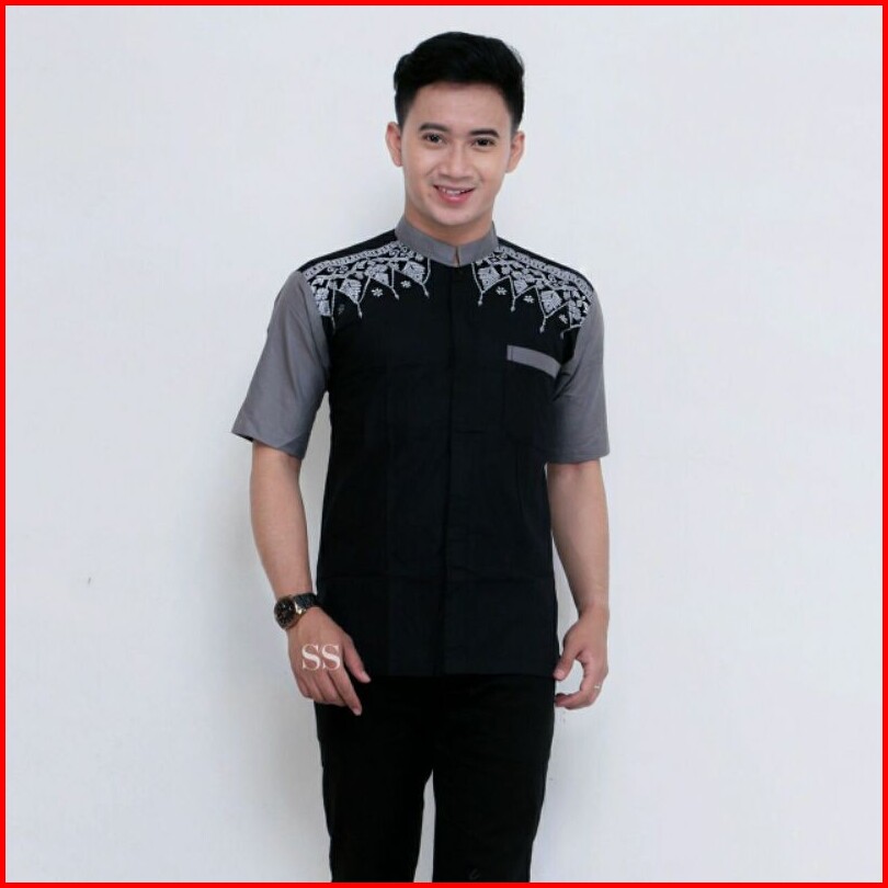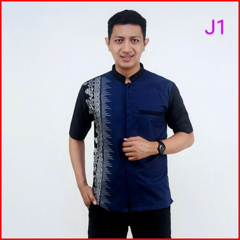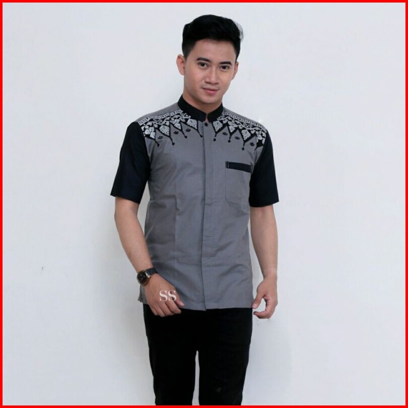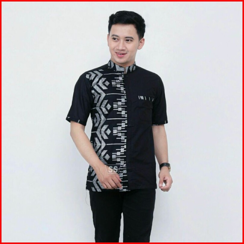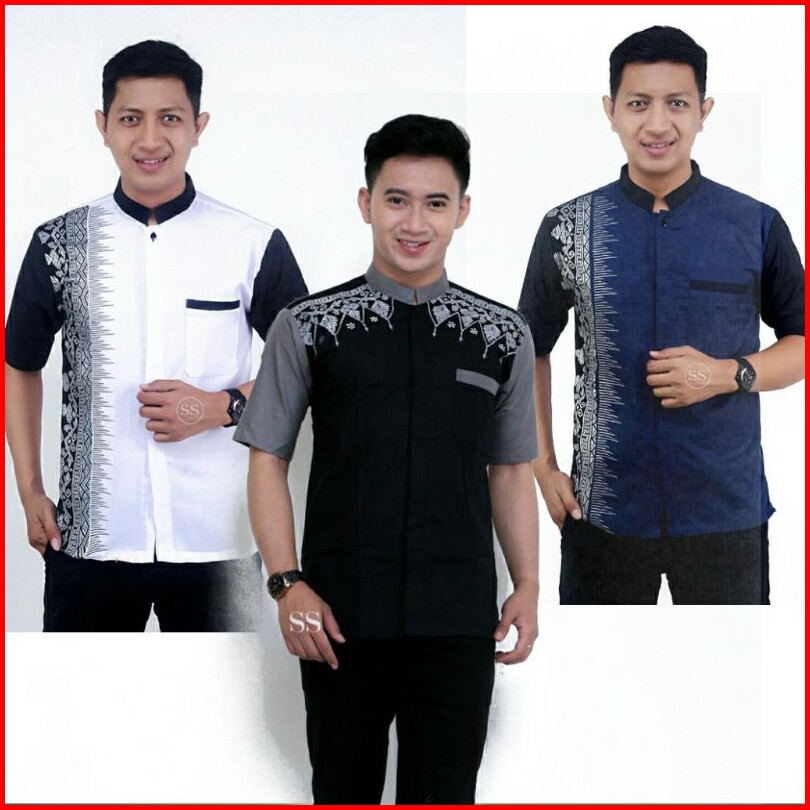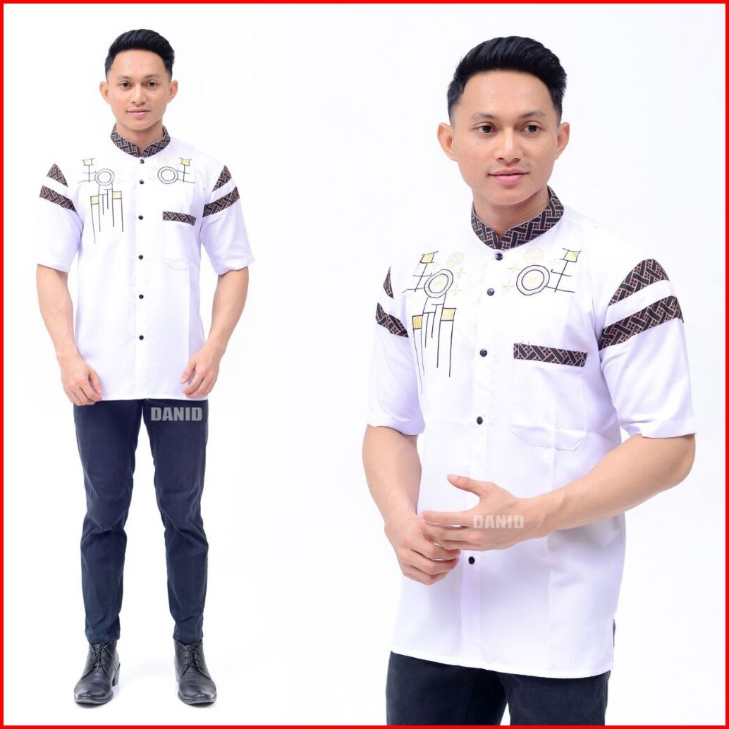 Baju Koko Pria Dewasa Baju Koko Putih Lengan Pendek Motif Batik Dan Bordir Khas Pekalongan