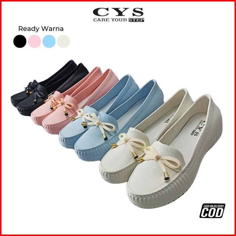 Cys Sepatu Flatshoes Wanita Model Slip On Pita Kekinian Korea Bahan Pvc Spt-32