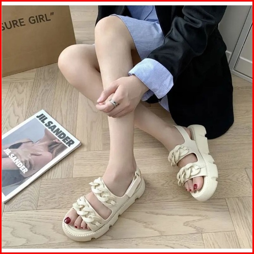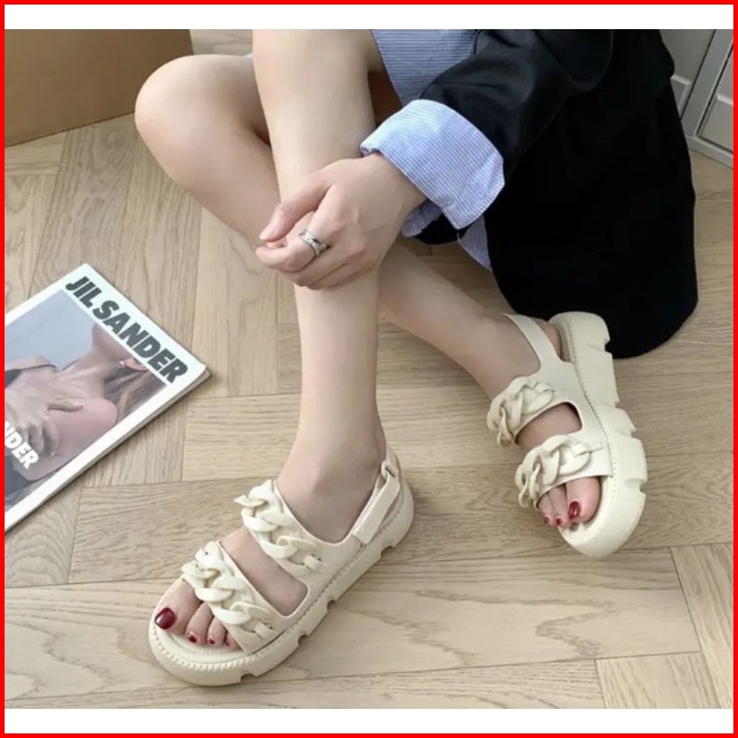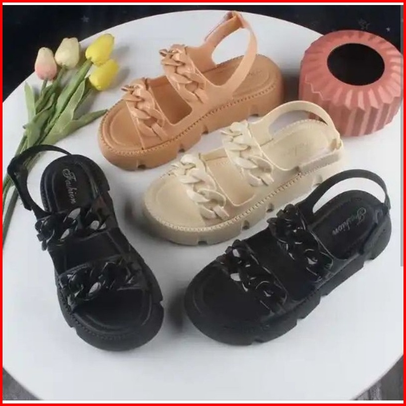 Sandal Gladiator Jelly Wanita Import Tali Rantai Dua Sandal Wedges Wanita
