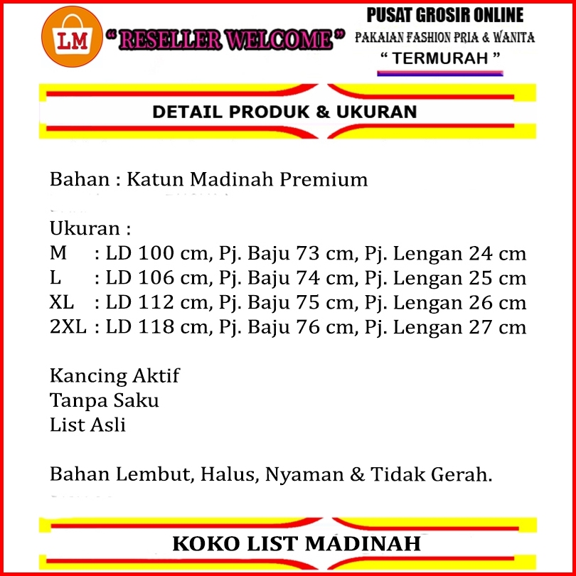 Baju Koko Pria Muslim Lis Madinah Katun Adem Lengan Pendek Jumbo Big Size M L Xl Xxl 30147
