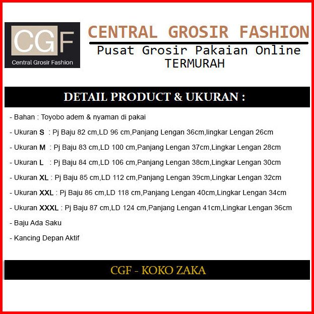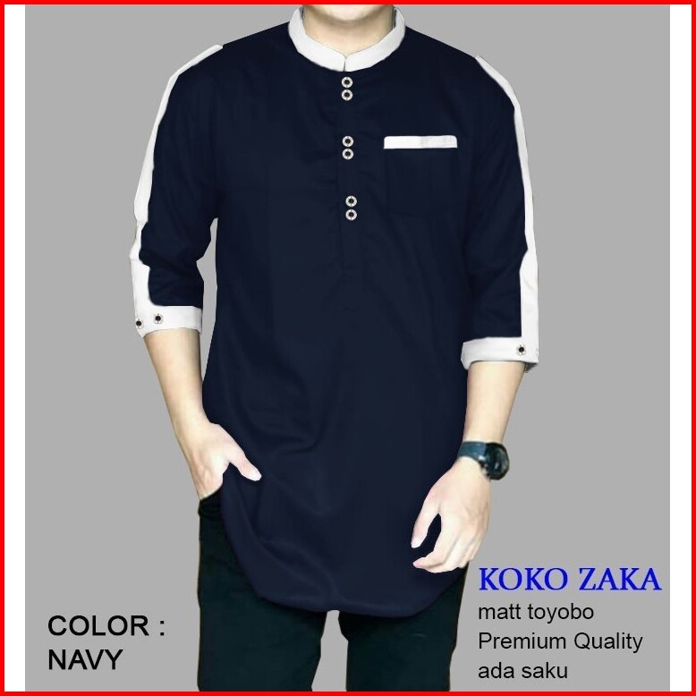 Koko Zaka Lengan 3 4 - Central Grosir Fashion Cgf - Ukuran S-3xl - Matt Katun Toyobo - Baju Koko Qurta Pria - Baju Koko