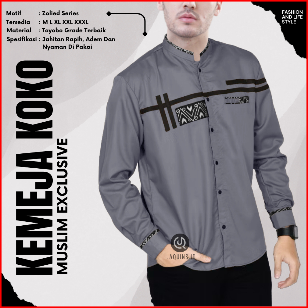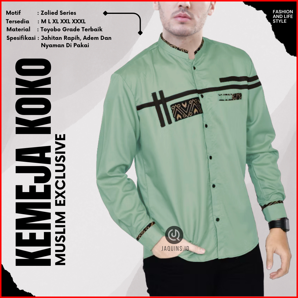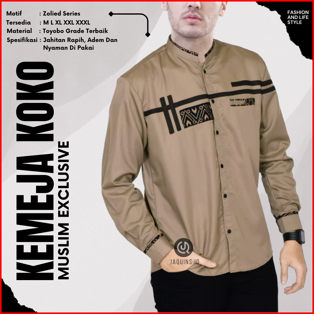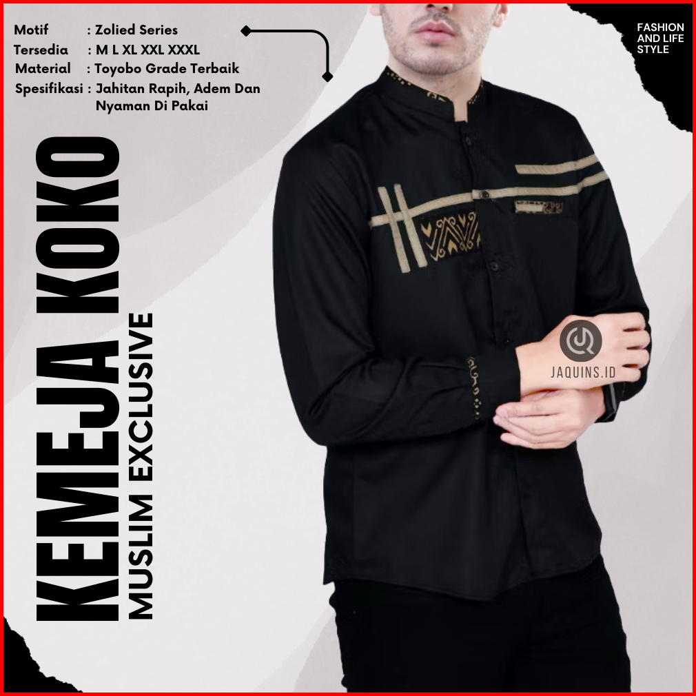 Baju Koko Pria-koko Lengan Panjang Motif Terbaru Zoled Warna Hitam Bahan Toyobo Size M L Xl Xxl Xxxl