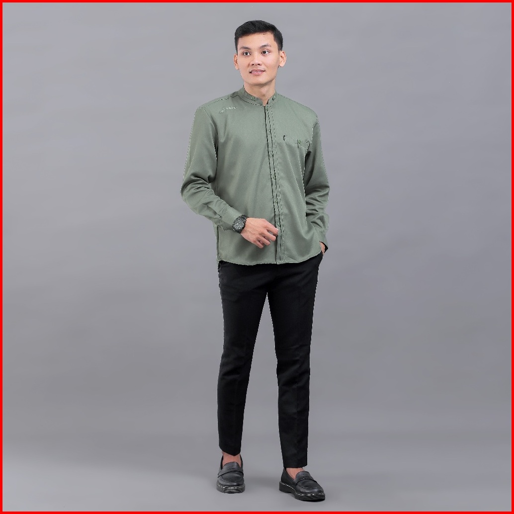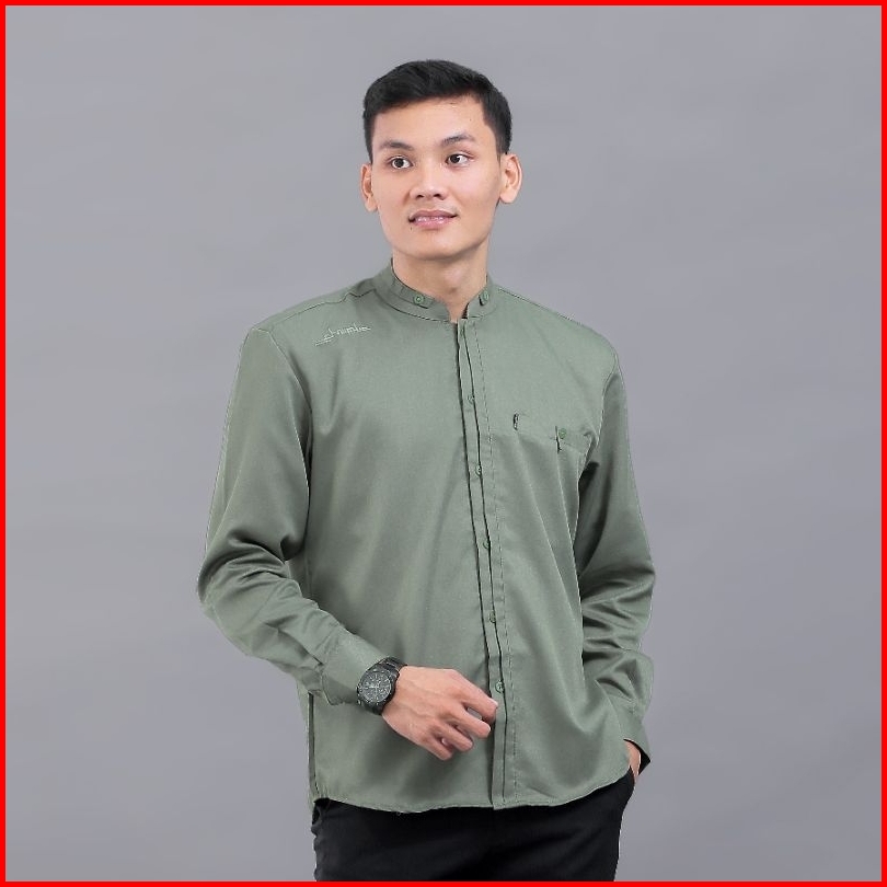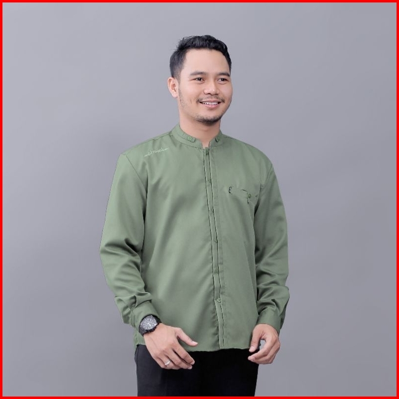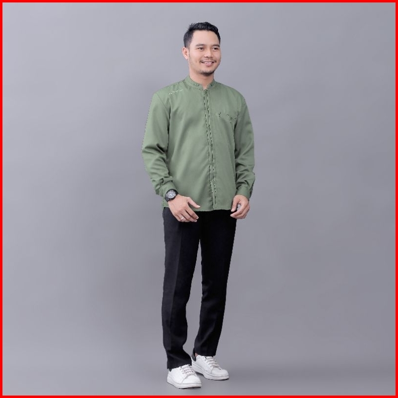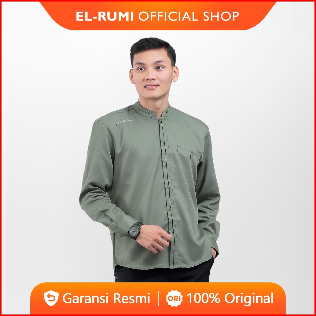 Baju Koko Pria Elrumi Lengan Panjang Motif Antasena Warna Sage